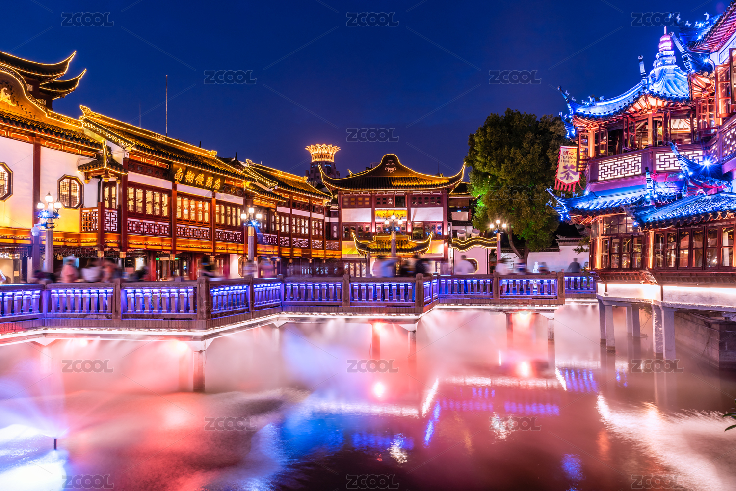 中國上海豫園商城的園林古建筑夜景