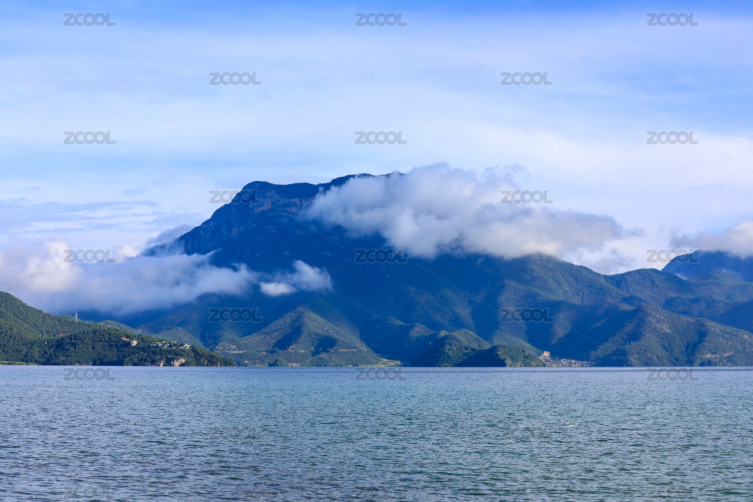 四川瀘沽湖山水全景圖和格姆女神山