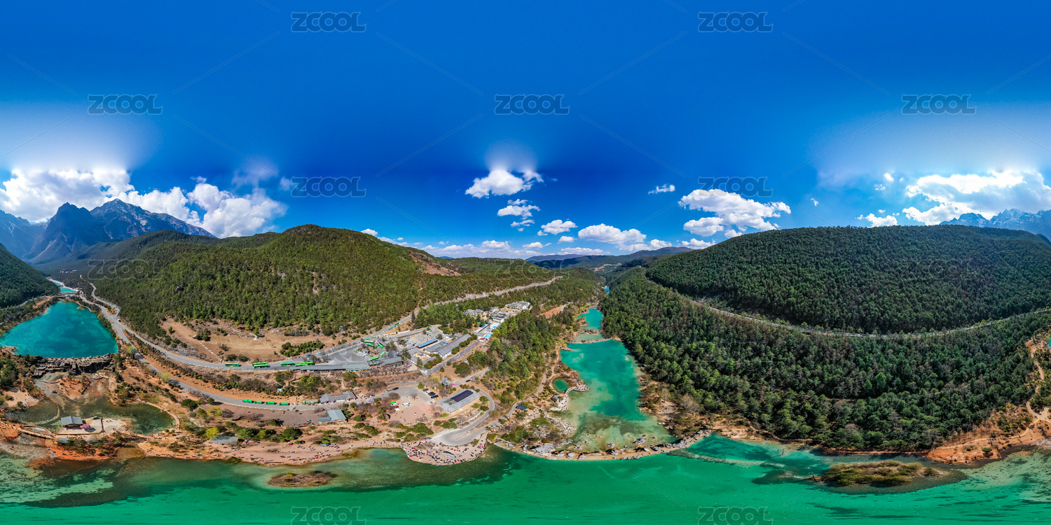 航拍云南麗江玉龍雪山藍(lán)月谷VR視角全景圖