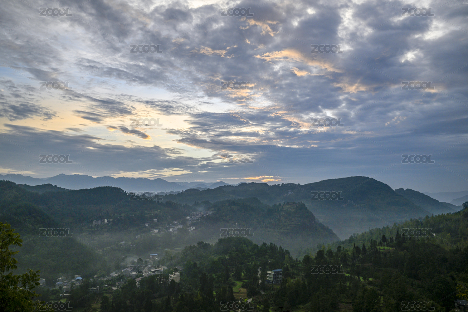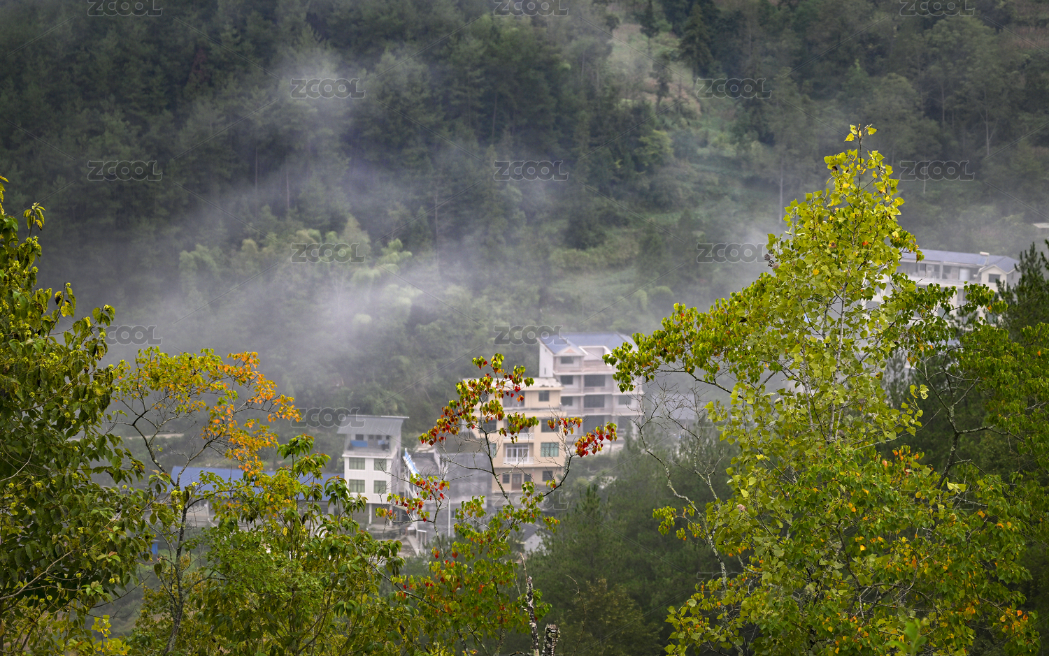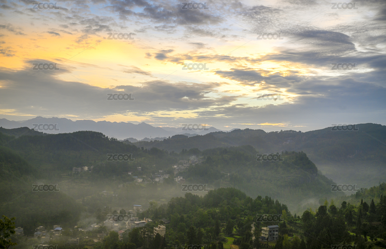 薄霧彩霞繪就鄉(xiāng)村美圖