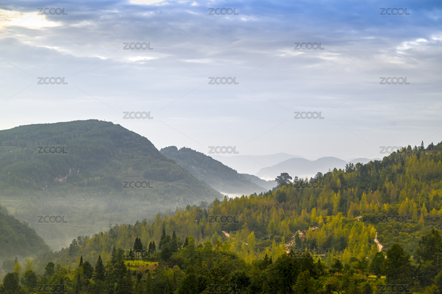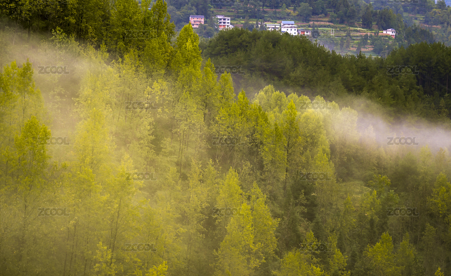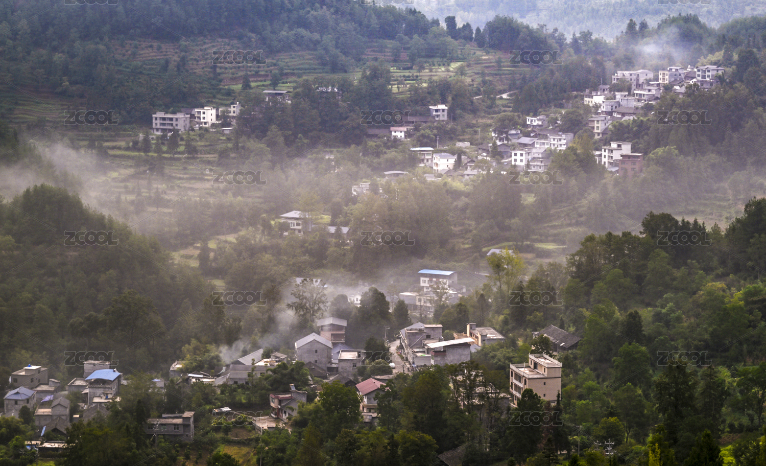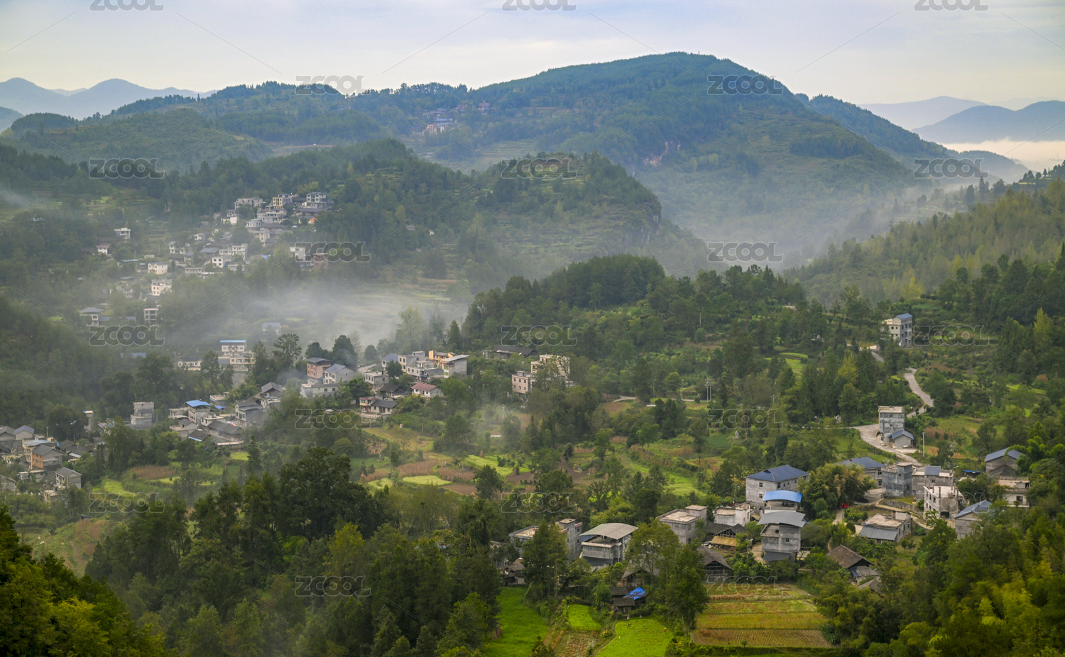薄霧彩霞繪就鄉(xiāng)村美圖