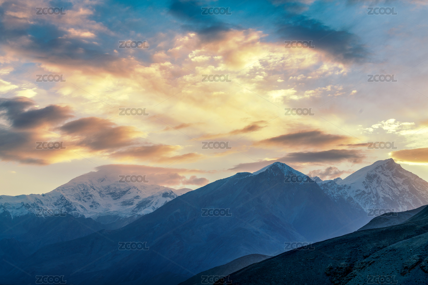 中國(guó)新疆喀什阿克陶雪山彩霞