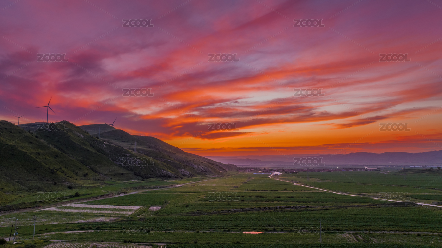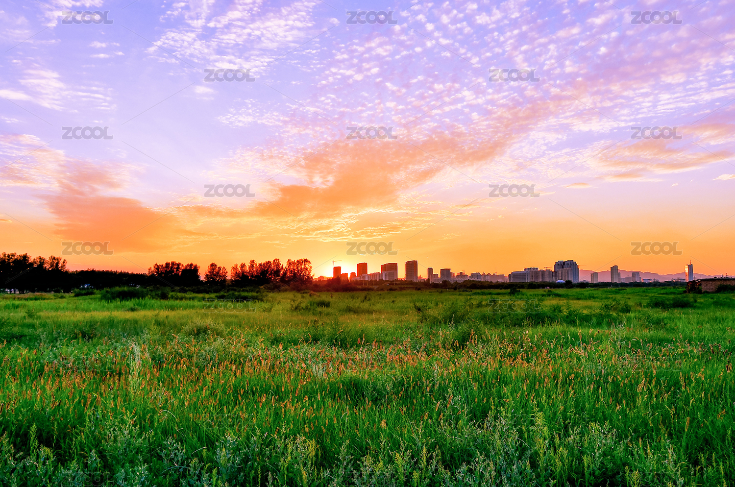 中國(guó)內(nèi)蒙古落日彩霞下的賽汗塔拉草原