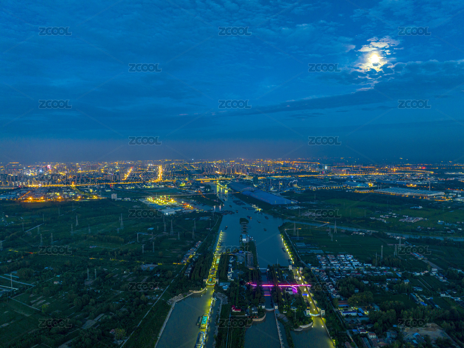 京杭大運(yùn)河中國(guó)江蘇省淮安市五河口段的彩霞風(fēng)光