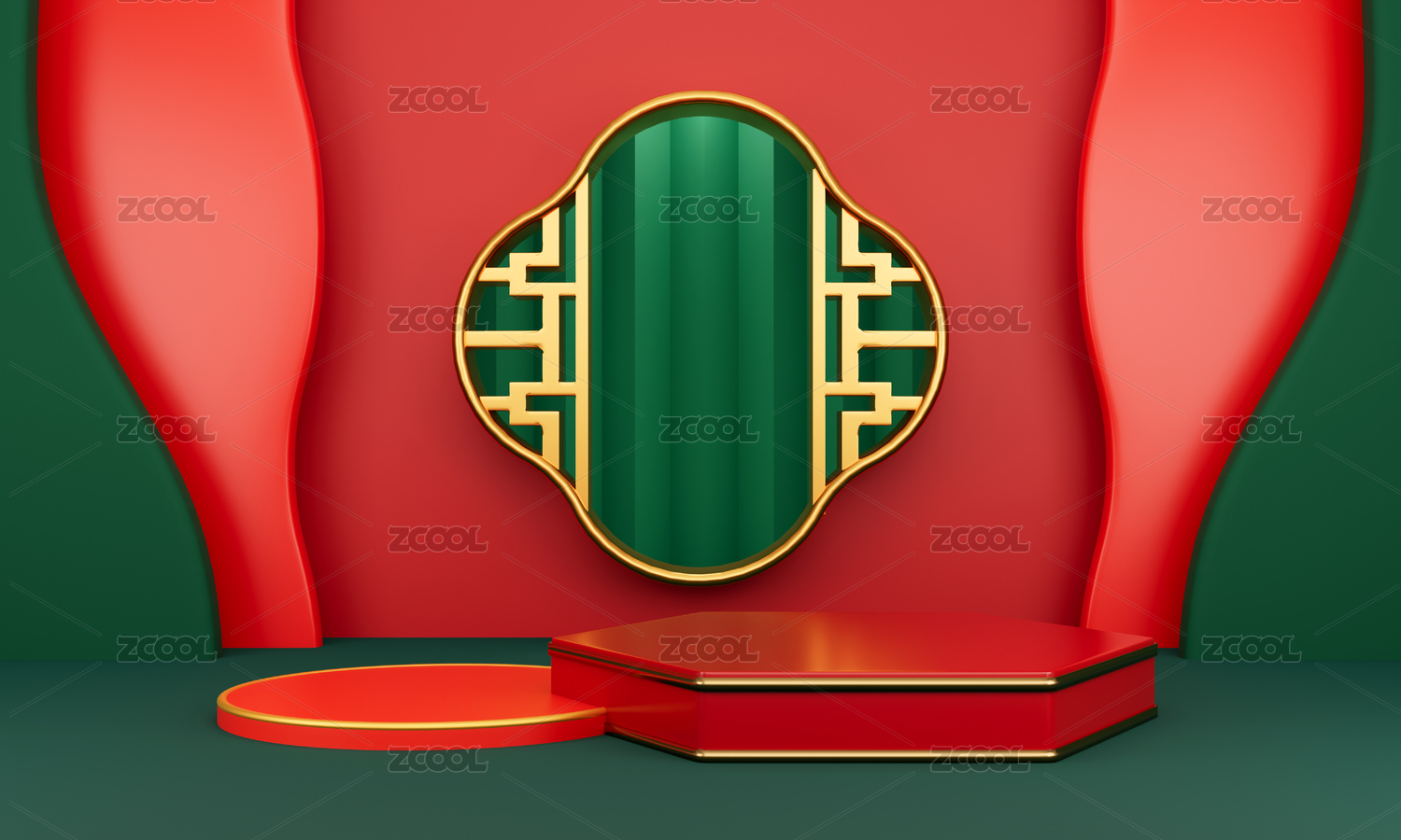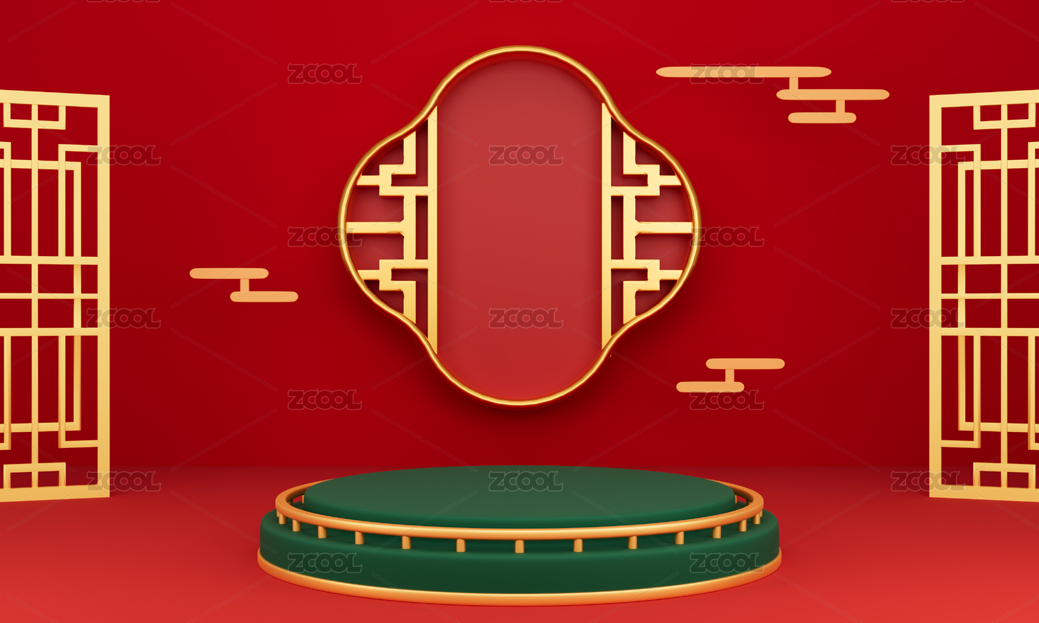 紅底金門花窗場(chǎng)景舞臺(tái)