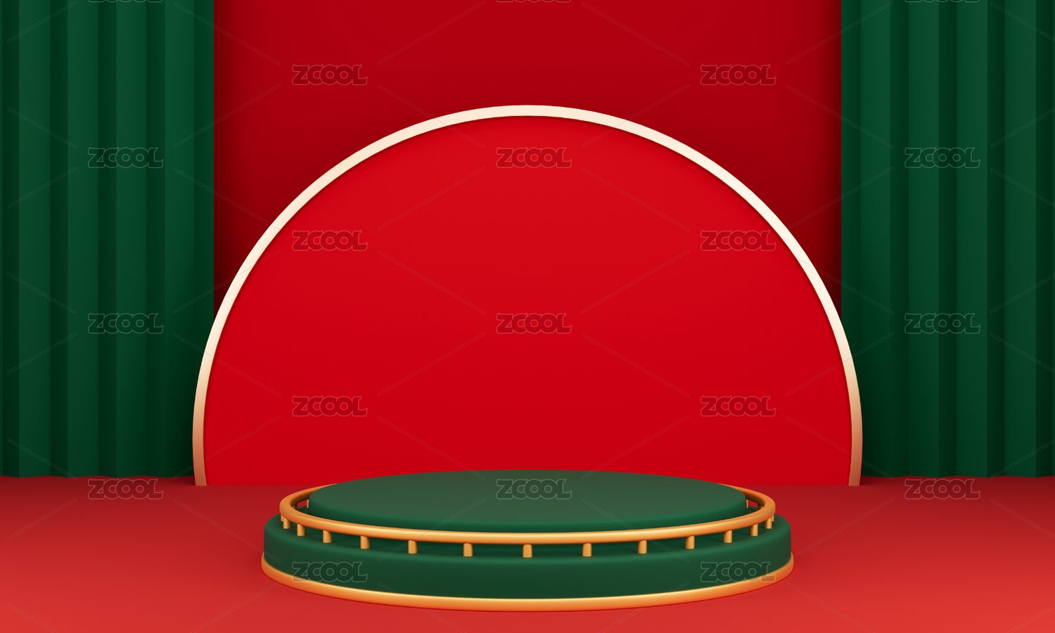 簡(jiǎn)約半日型墨綠舞臺(tái)場(chǎng)景