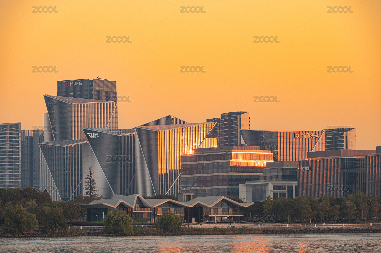 上海浦東前灘夕陽(yáng)時(shí)刻風(fēng)景