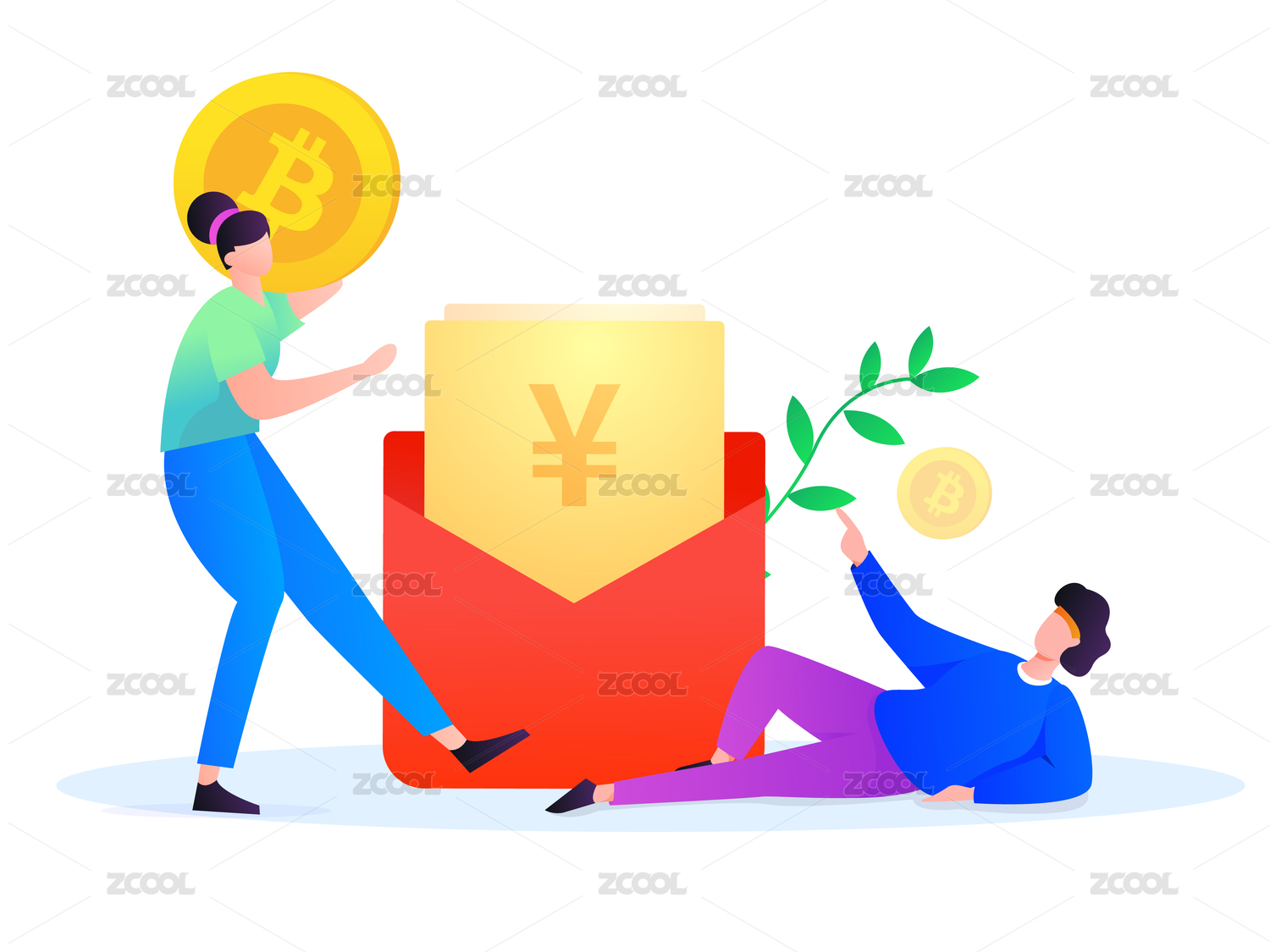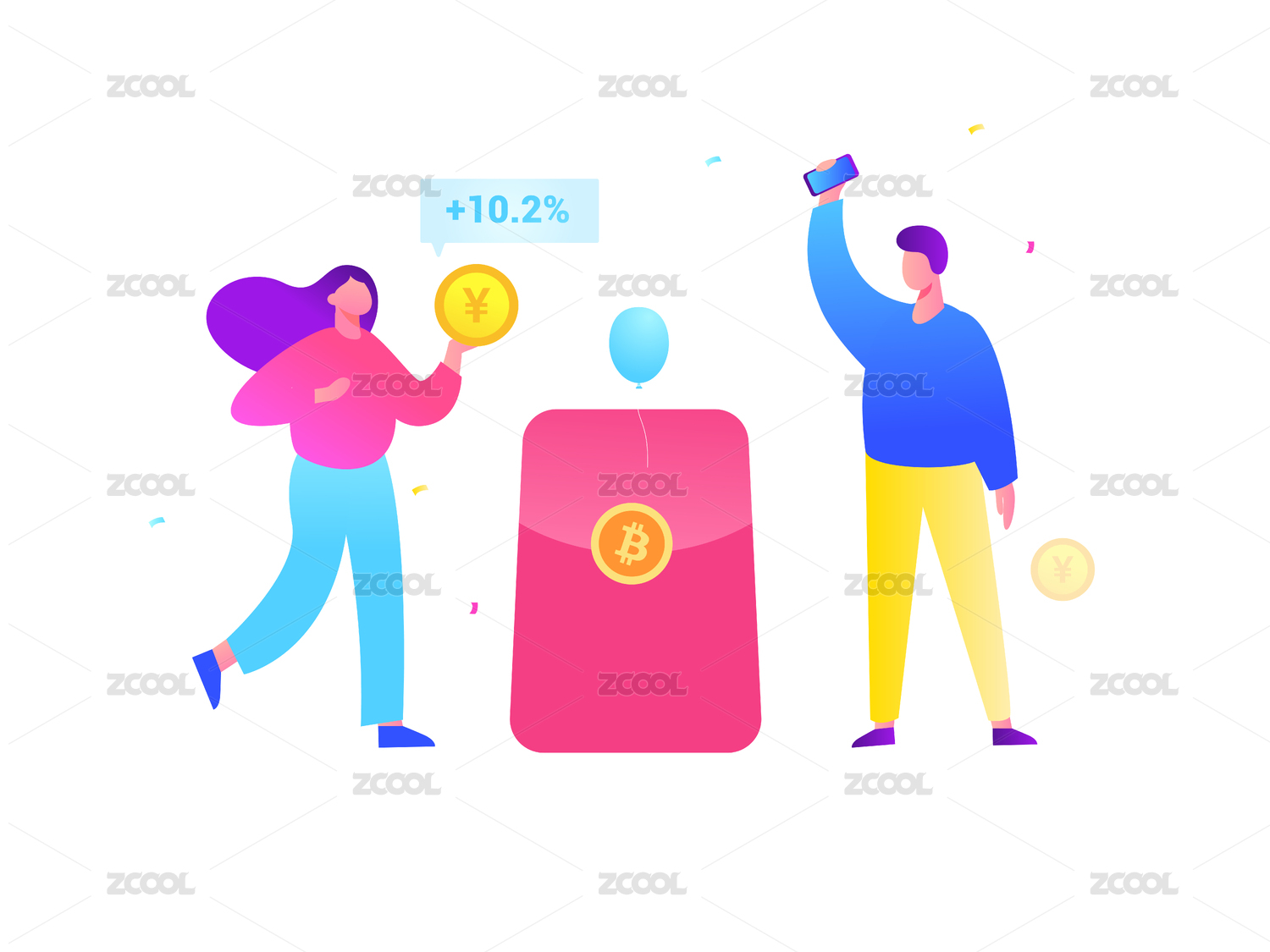 理財理財增值邀請好友獲得禮品,扁平矢量人物場景創(chuàng)意概念插畫
