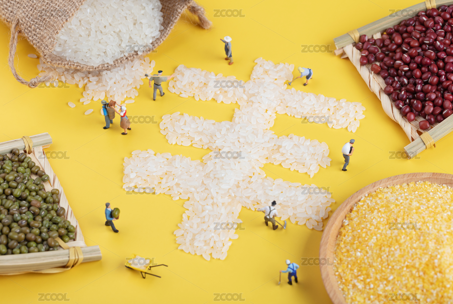 金秋五谷豐收大米擺成豐字勞作的農(nóng)民