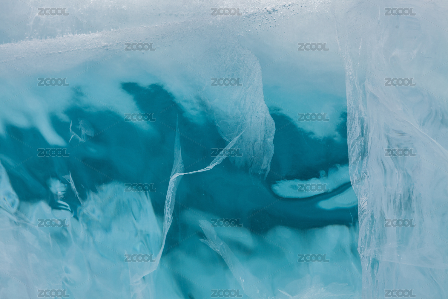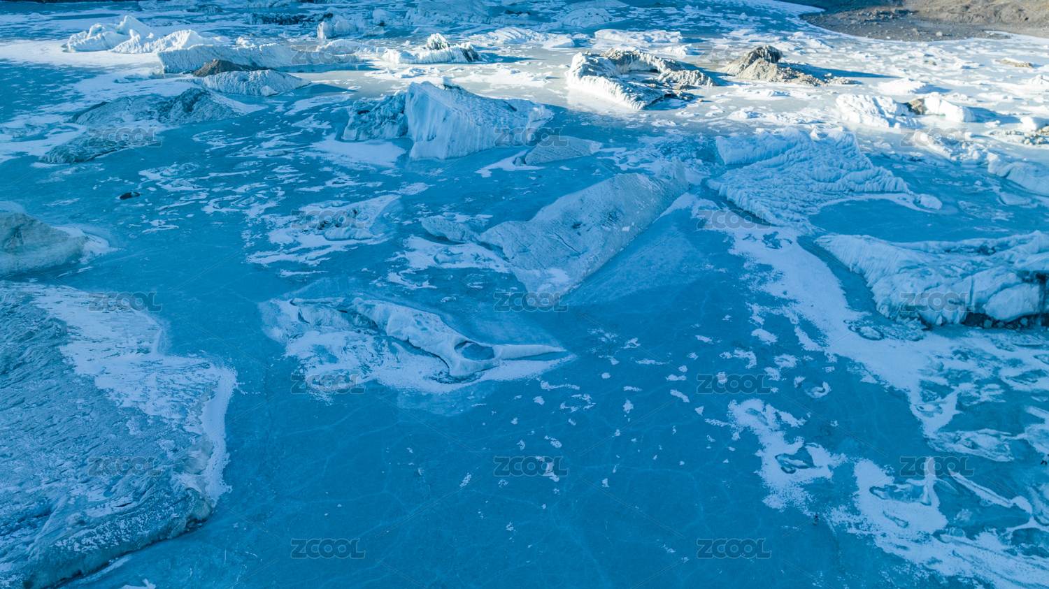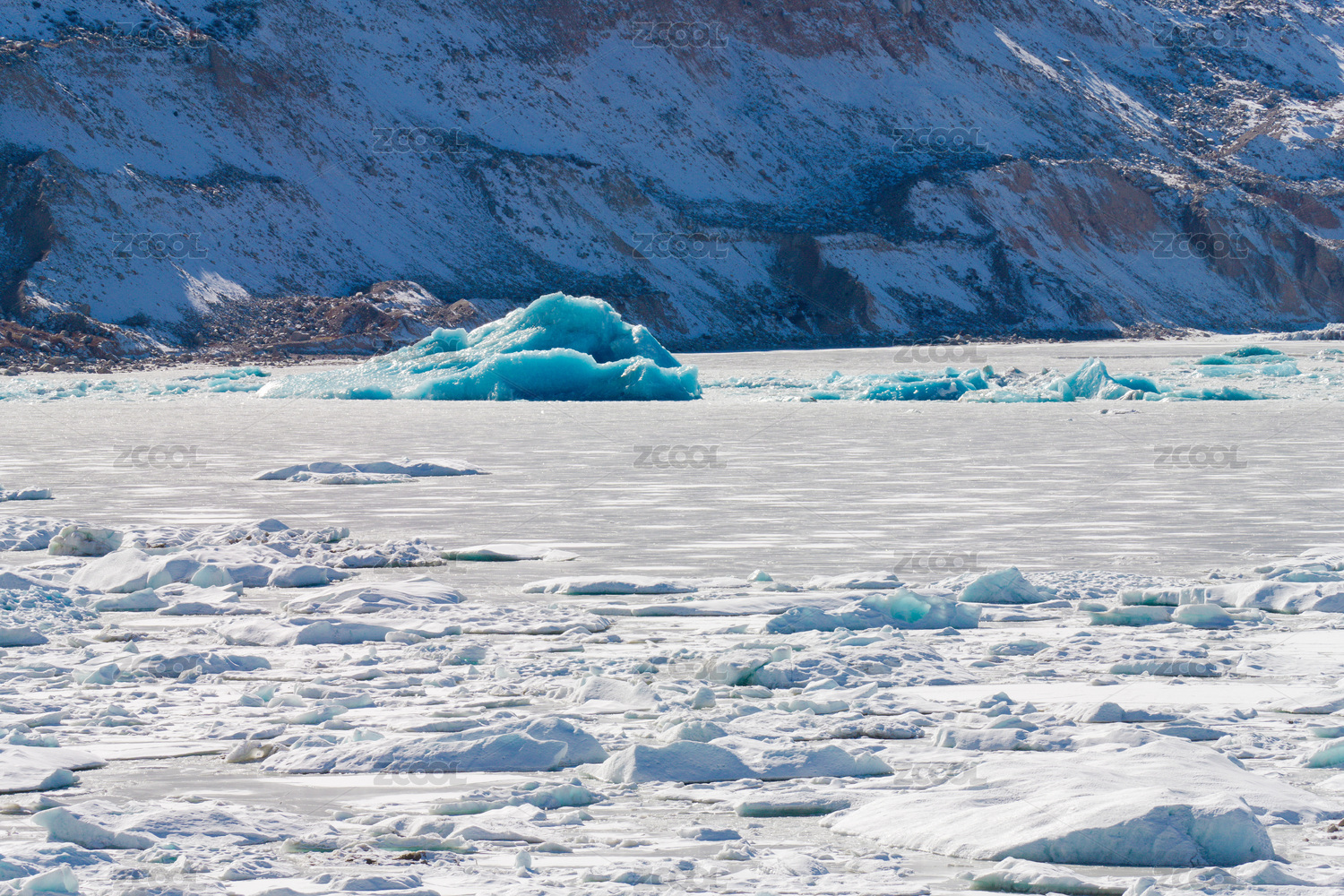 晴朗的冬天,來(lái)古冰川表面的白色冰塊和藍(lán)冰