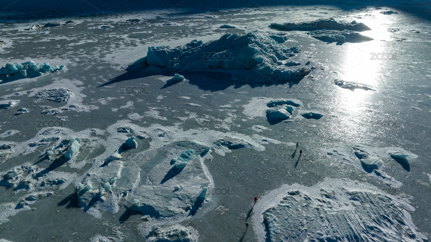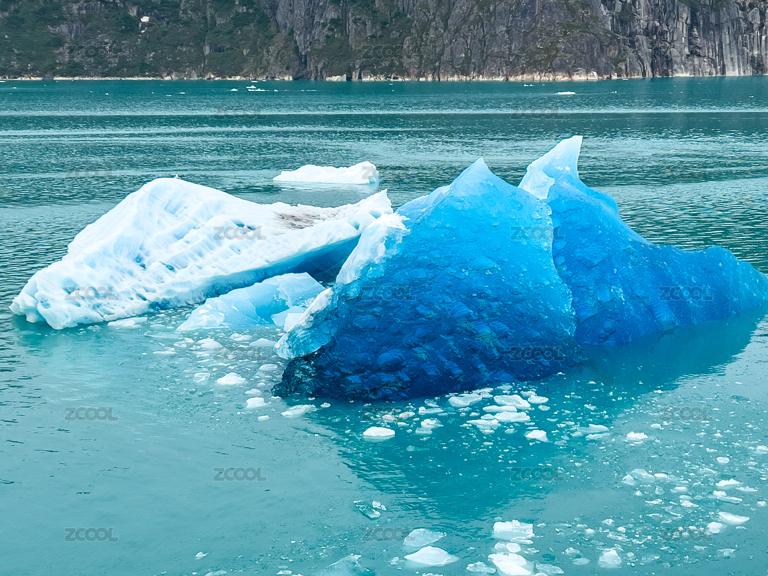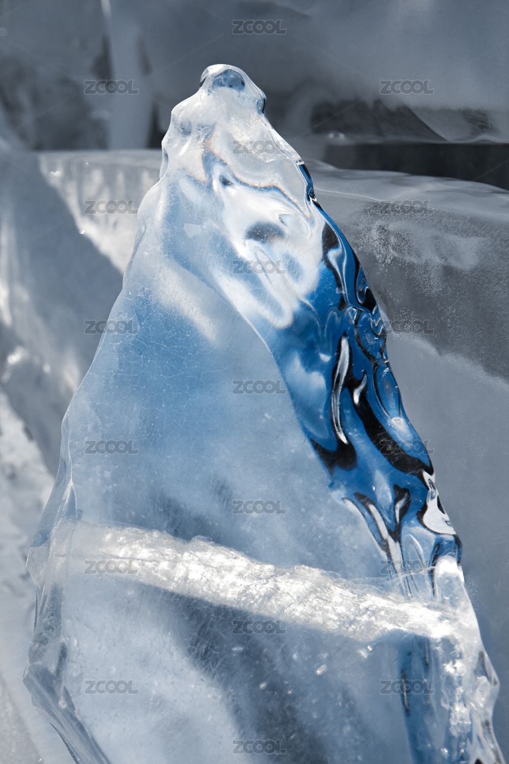 晴朗的冬天,來(lái)古冰川表面的白色冰塊和藍(lán)冰