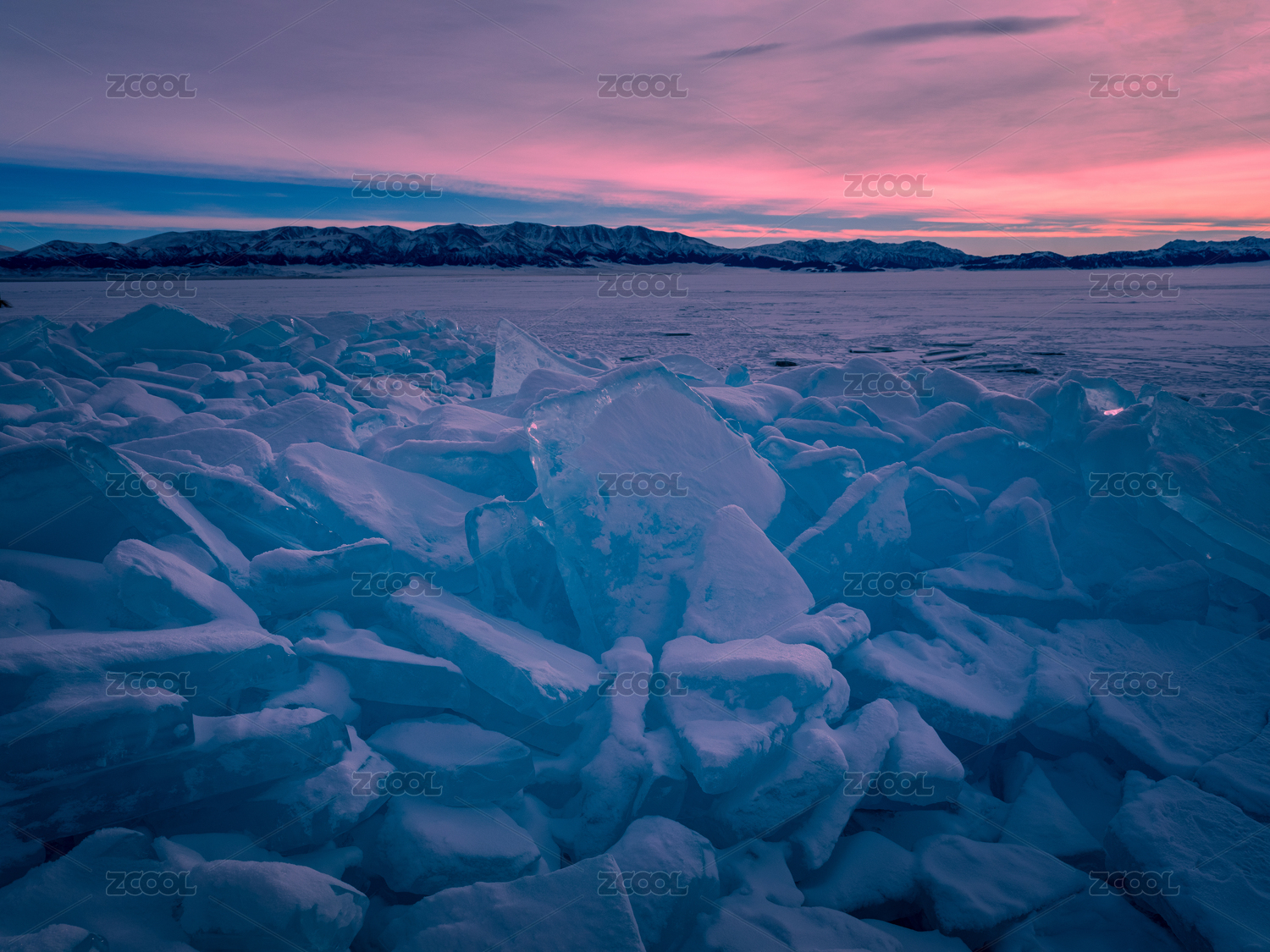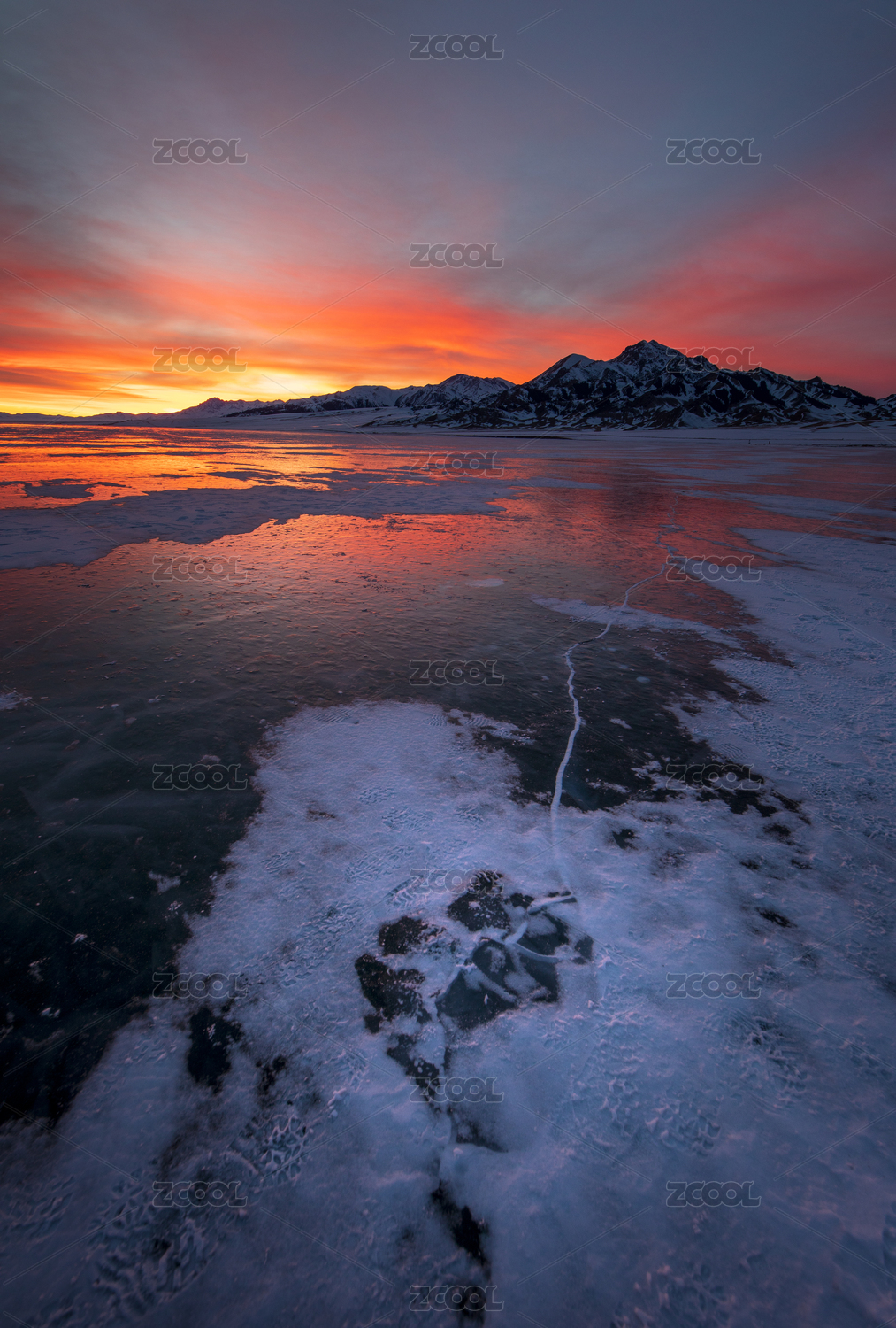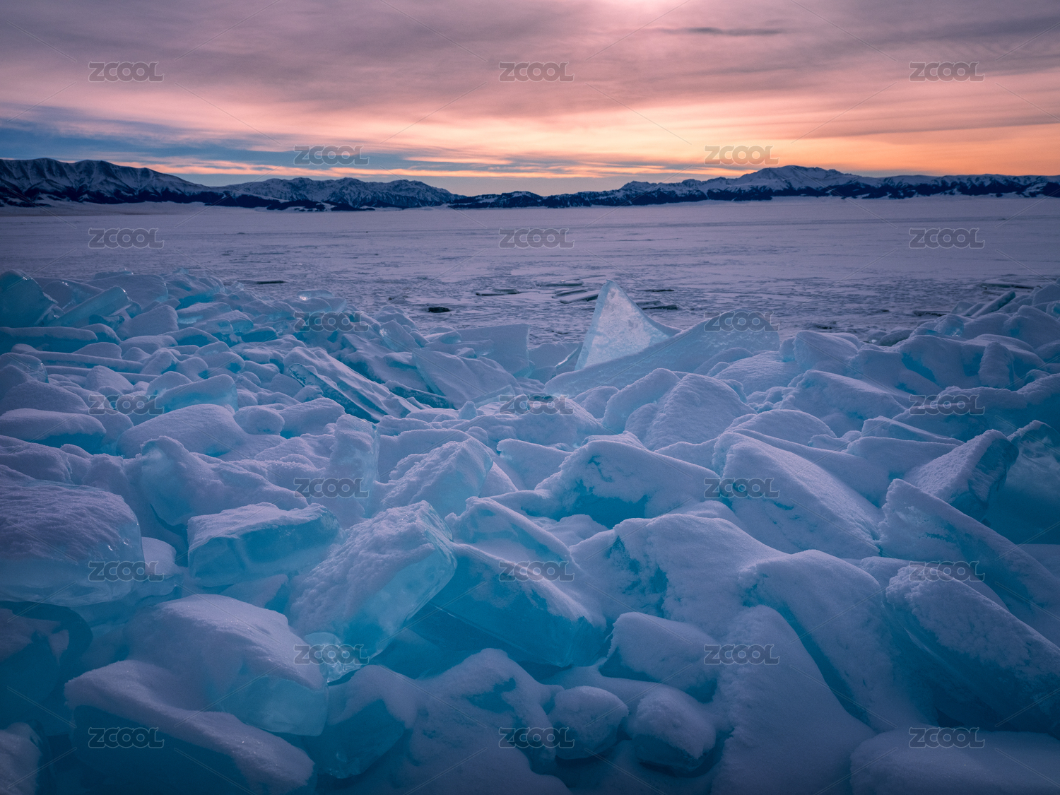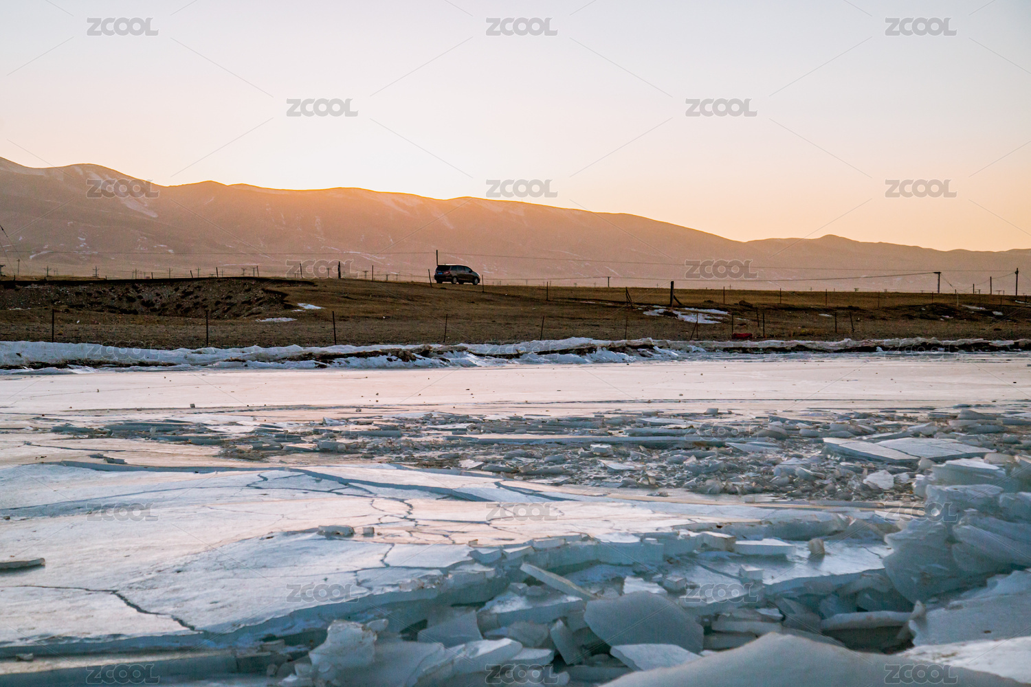 中國(guó)新疆賽里木湖藍(lán)冰夕陽(yáng)冰裂