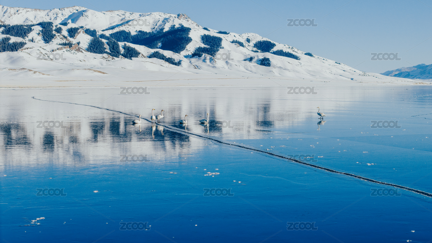中國(guó)新疆博州 賽里木湖冬季藍(lán)冰雪景