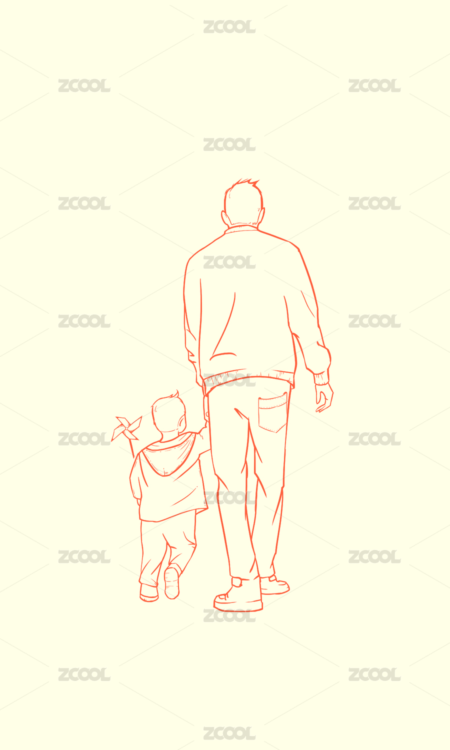 溫馨大手牽小手年輕的父子背影,父親節(jié)插畫