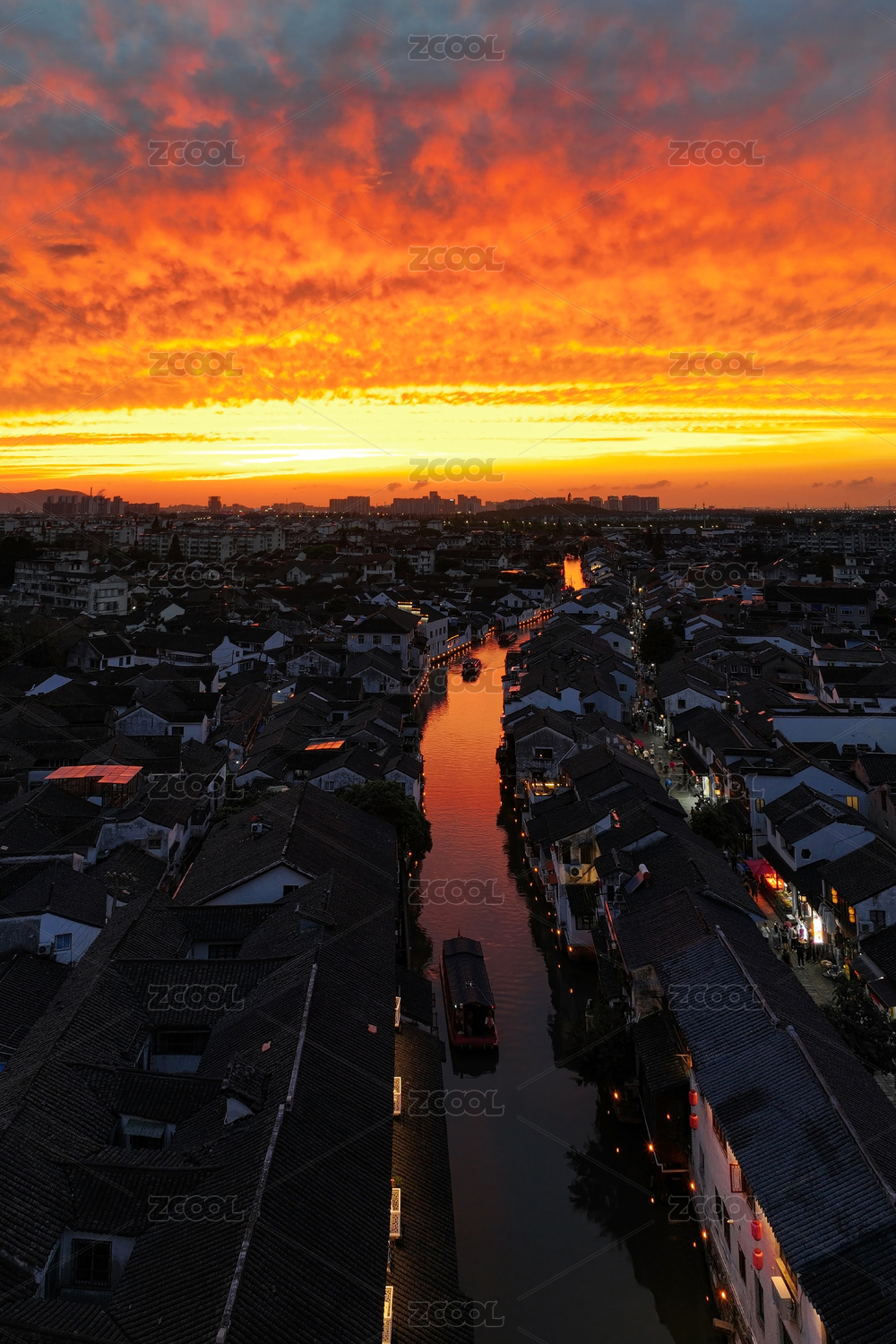 江蘇蘇州七里山塘山塘街山塘河日出景觀