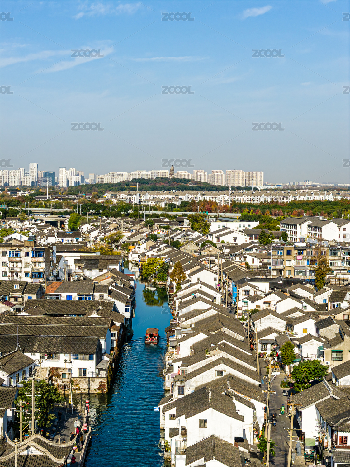 航拍中國江蘇蘇州七里山塘景區(qū)山塘街