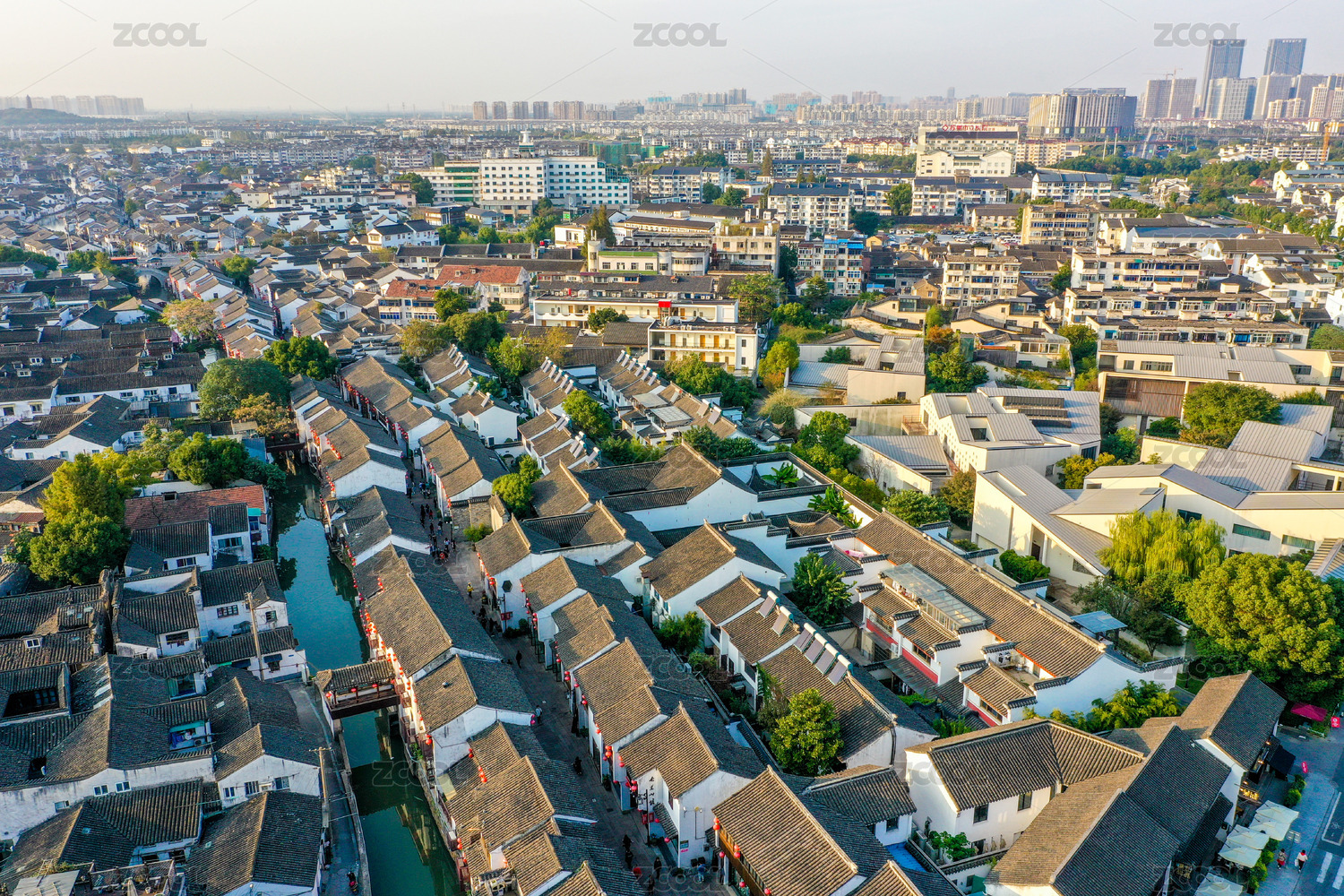 中國江蘇蘇州山塘街風(fēng)光航拍
