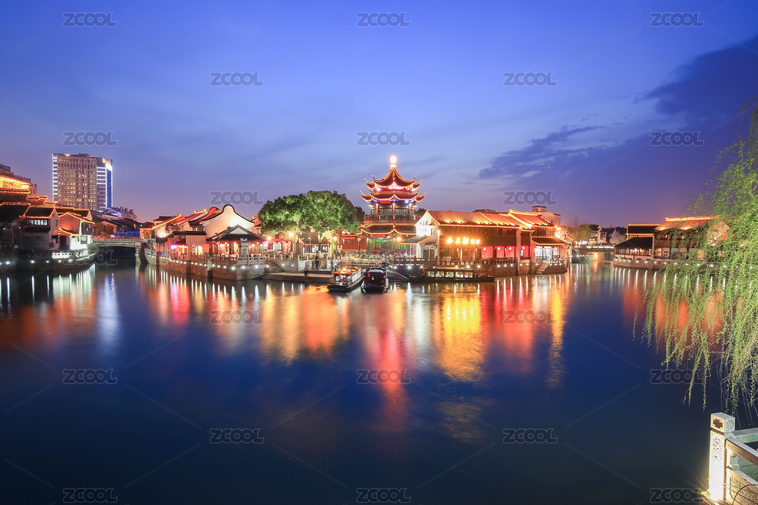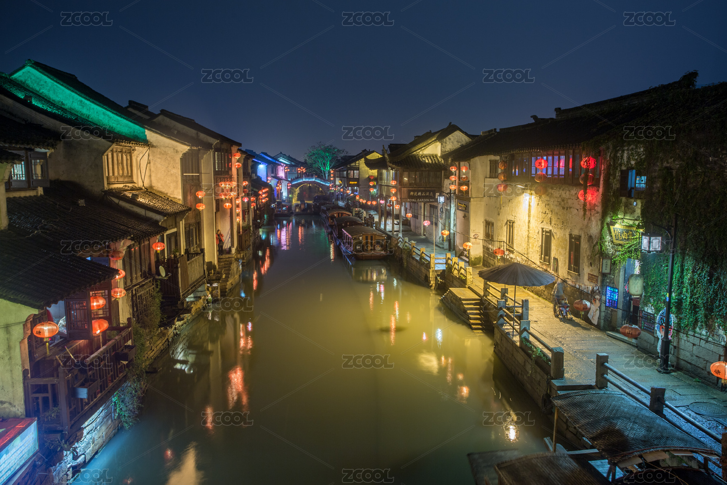 中國江蘇蘇州山塘街歷史文化街區(qū)夜景