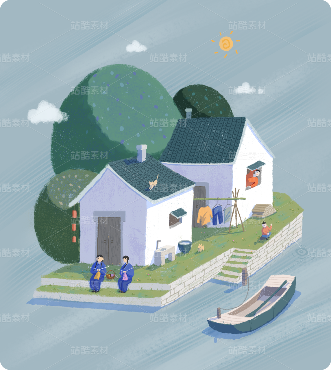 江南水鄉(xiāng)人們的日常生活插畫