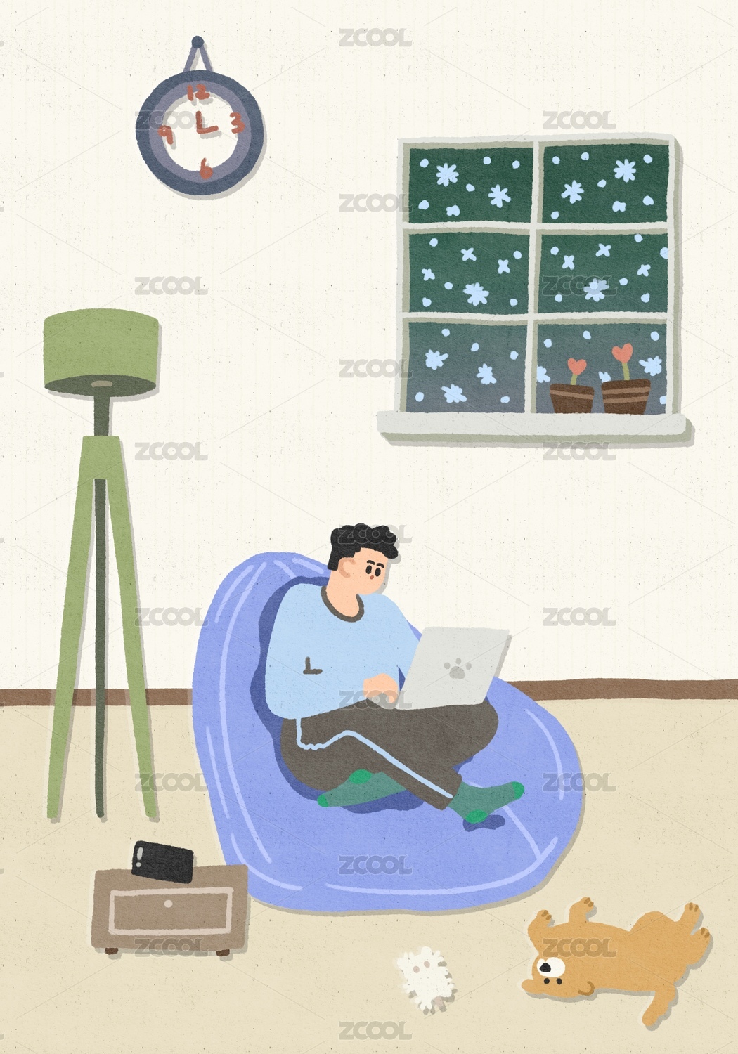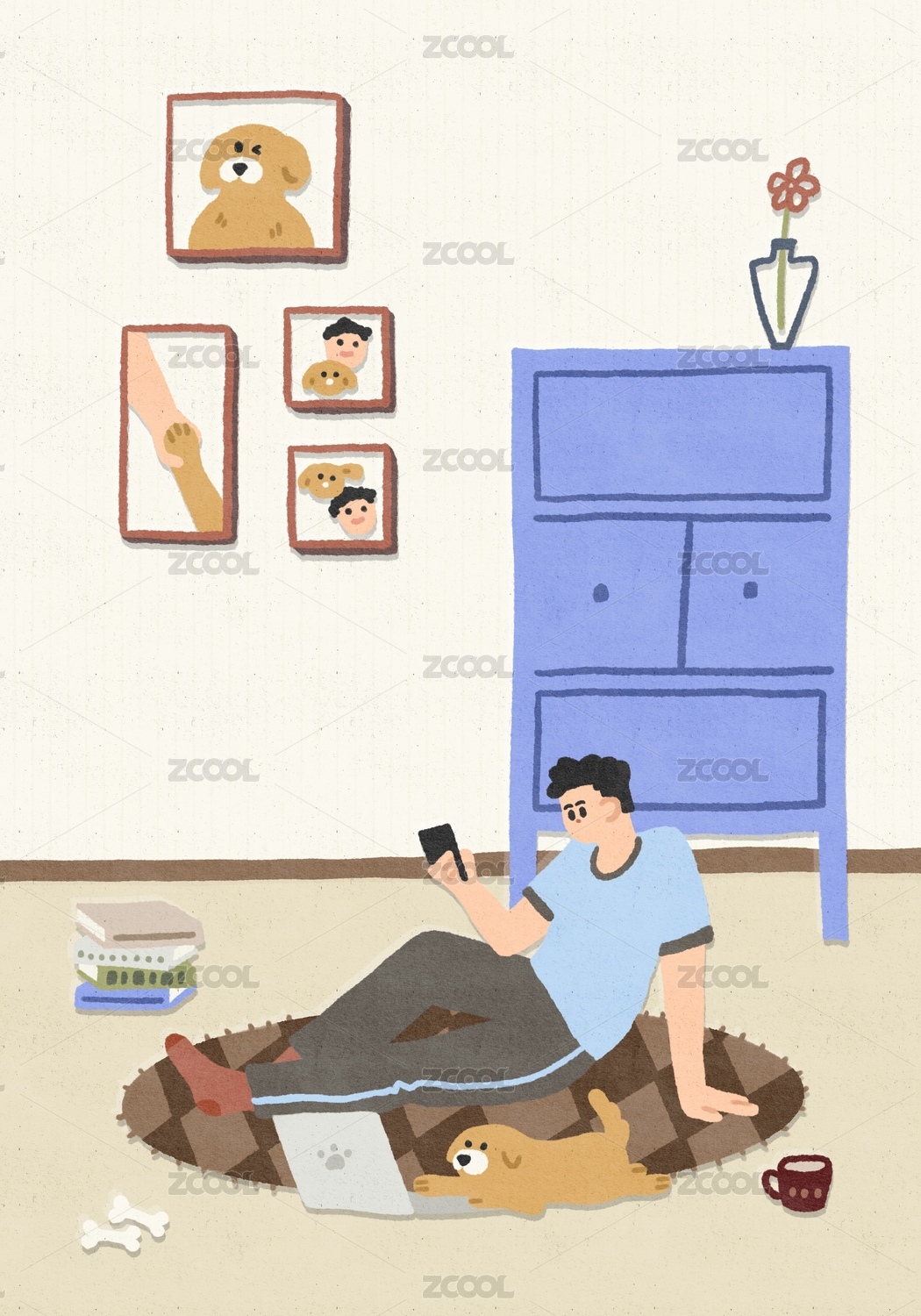 男人和狗居家日常