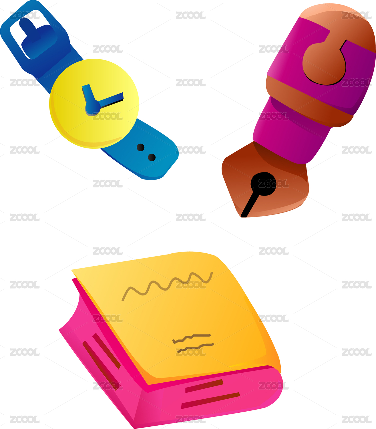 簡筆畫矢量插圖日常書籍手表