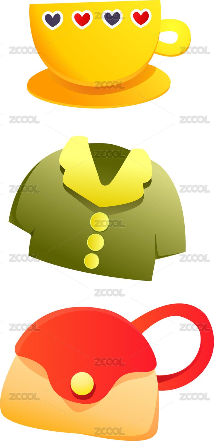 簡筆畫插圖日常衣服杯子包包