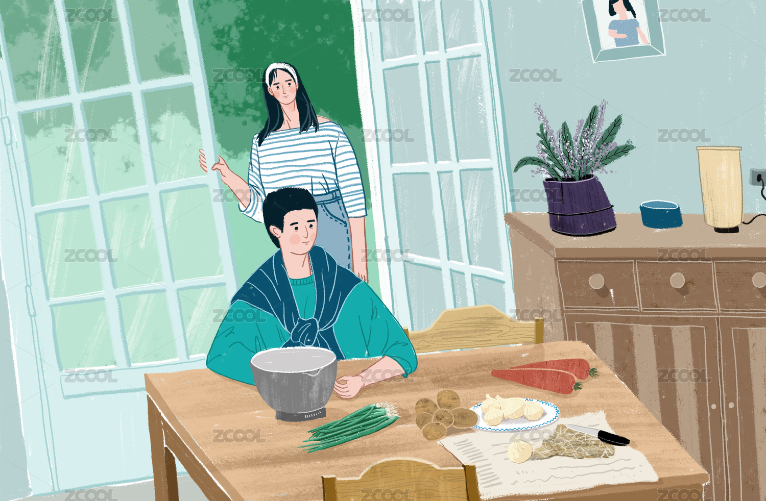 情侶日常插畫