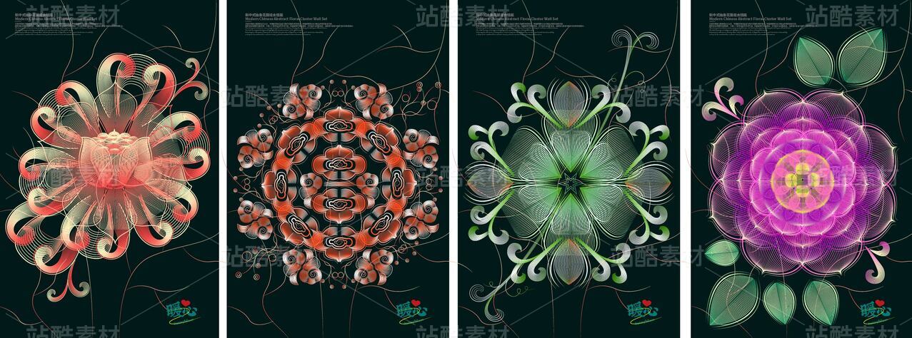新中式抽象花簇組合掛畫