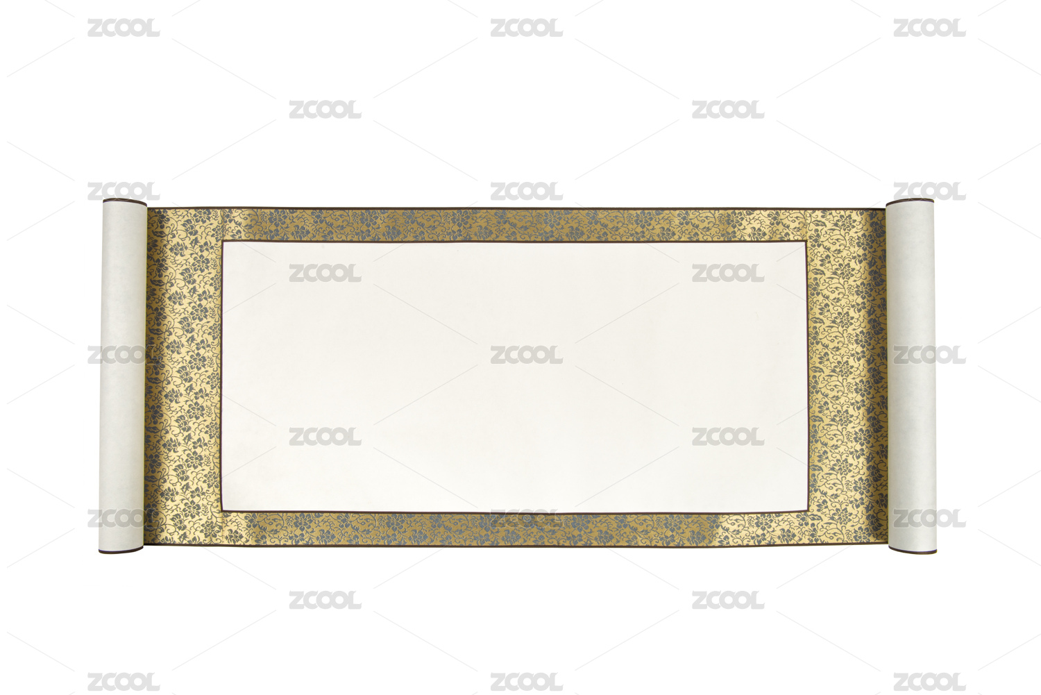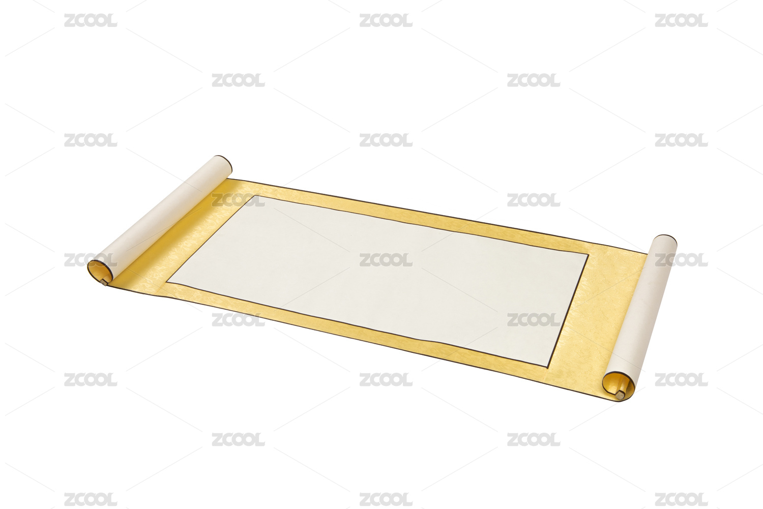 金黃色中式空白卷軸畫卷掛畫