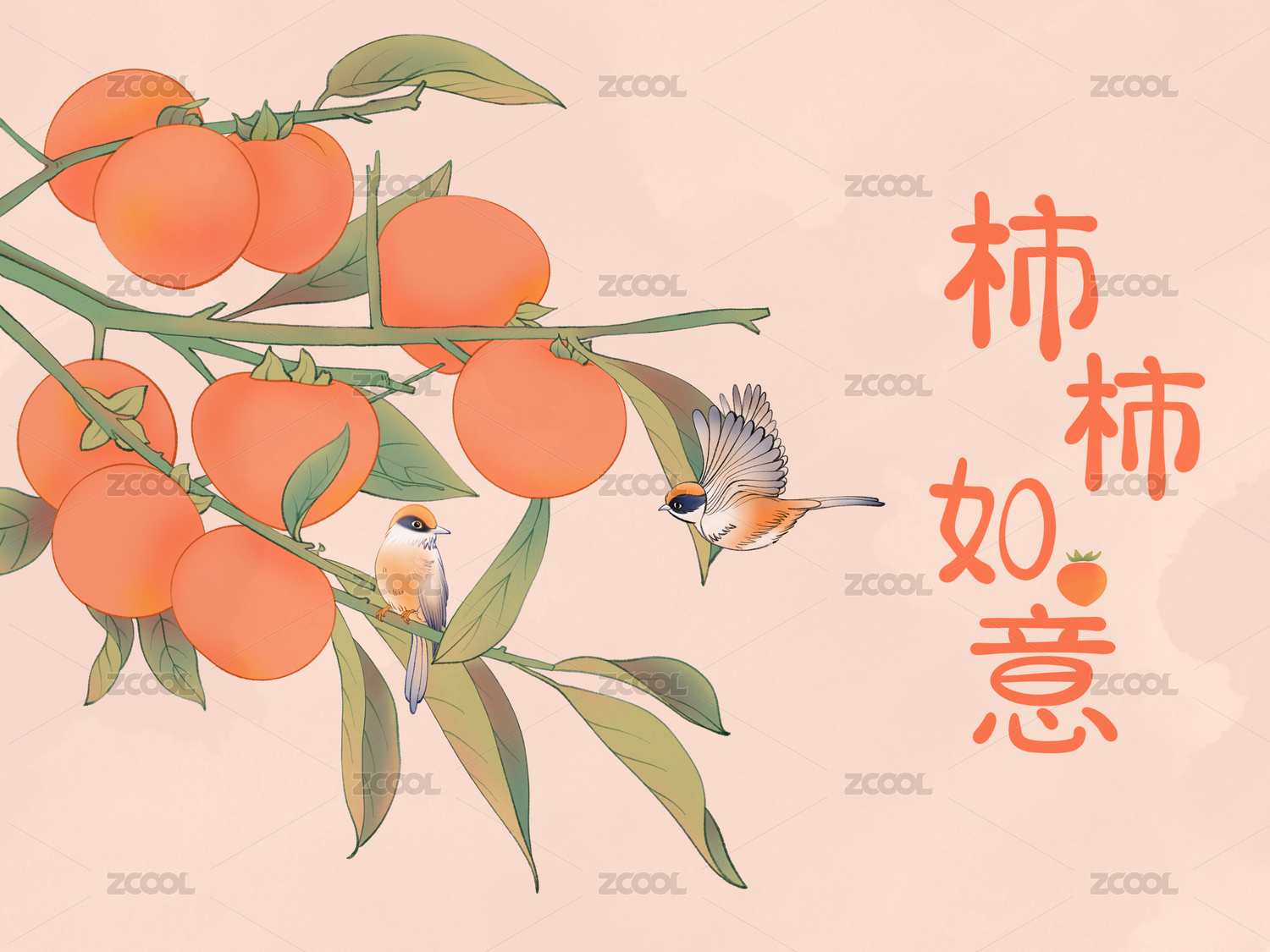 柿柿如意水果插畫