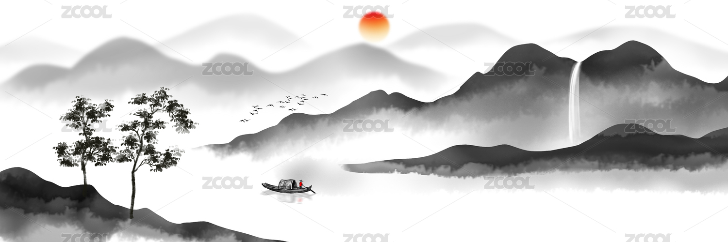 中式意境水墨山水畫