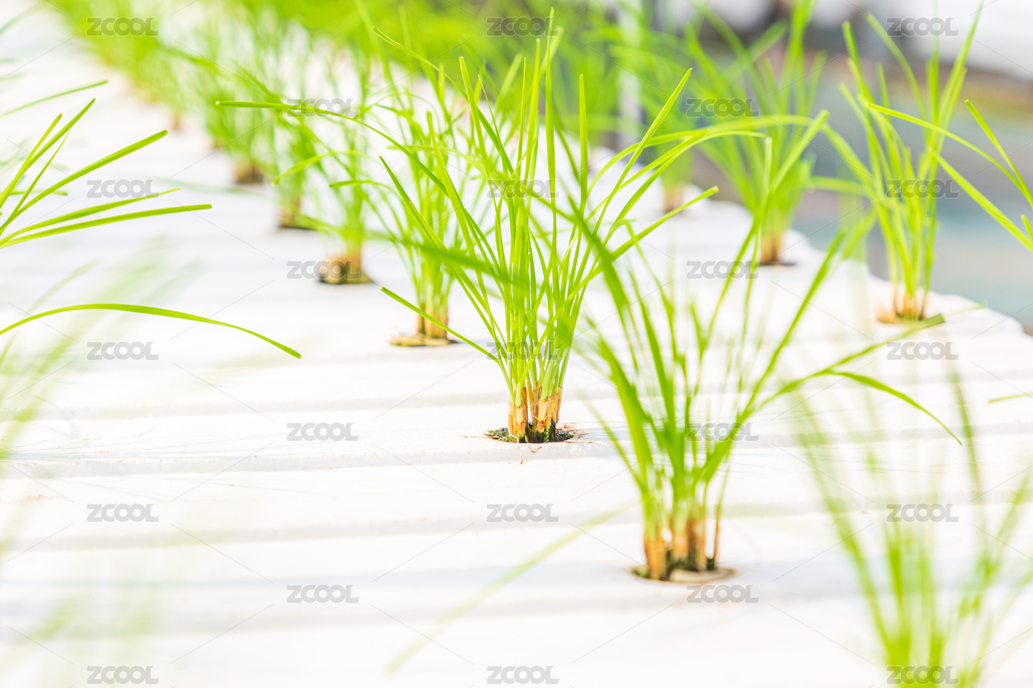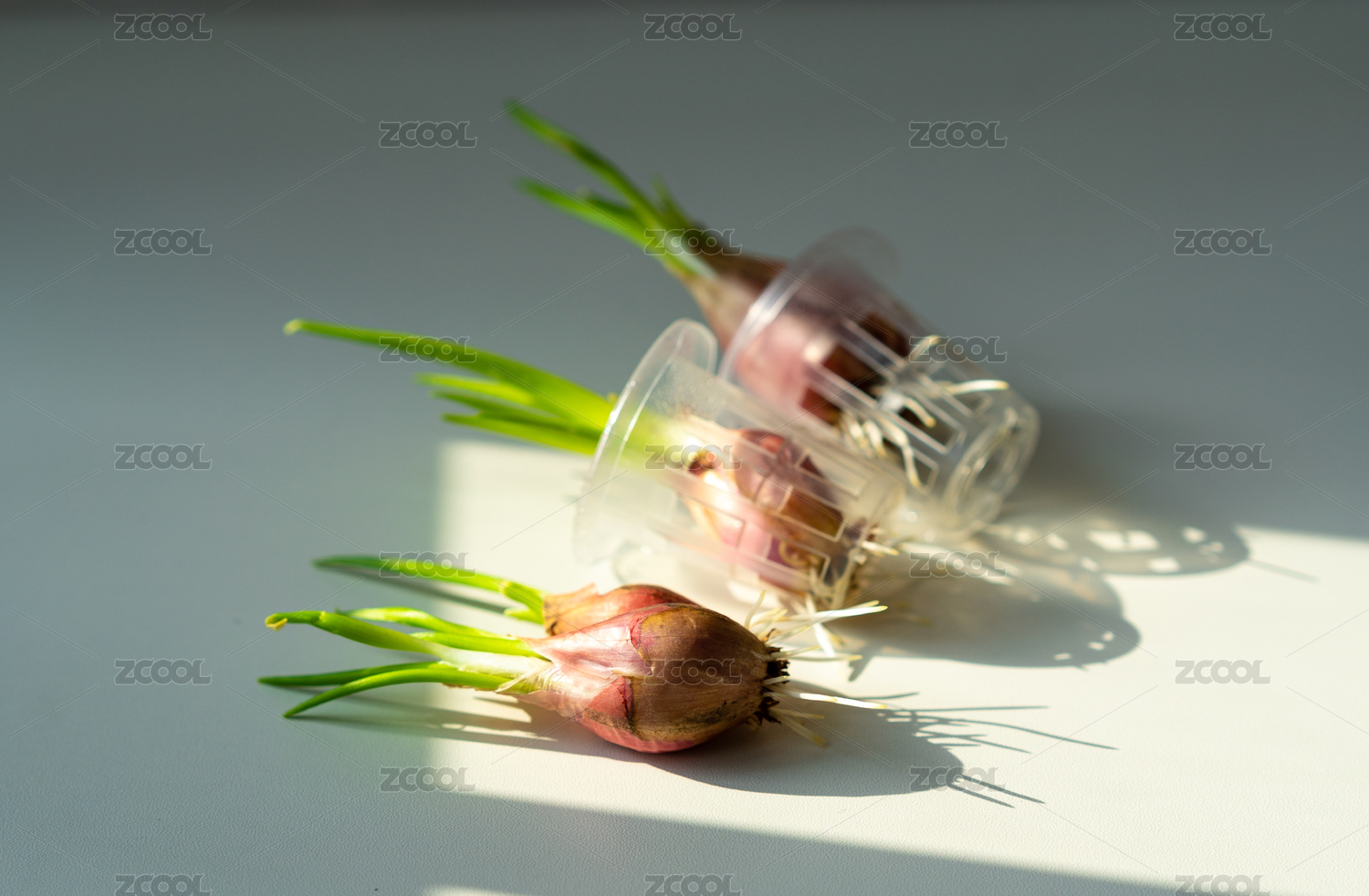 水培工具定植籃裝著小蔥擺在桌上特寫