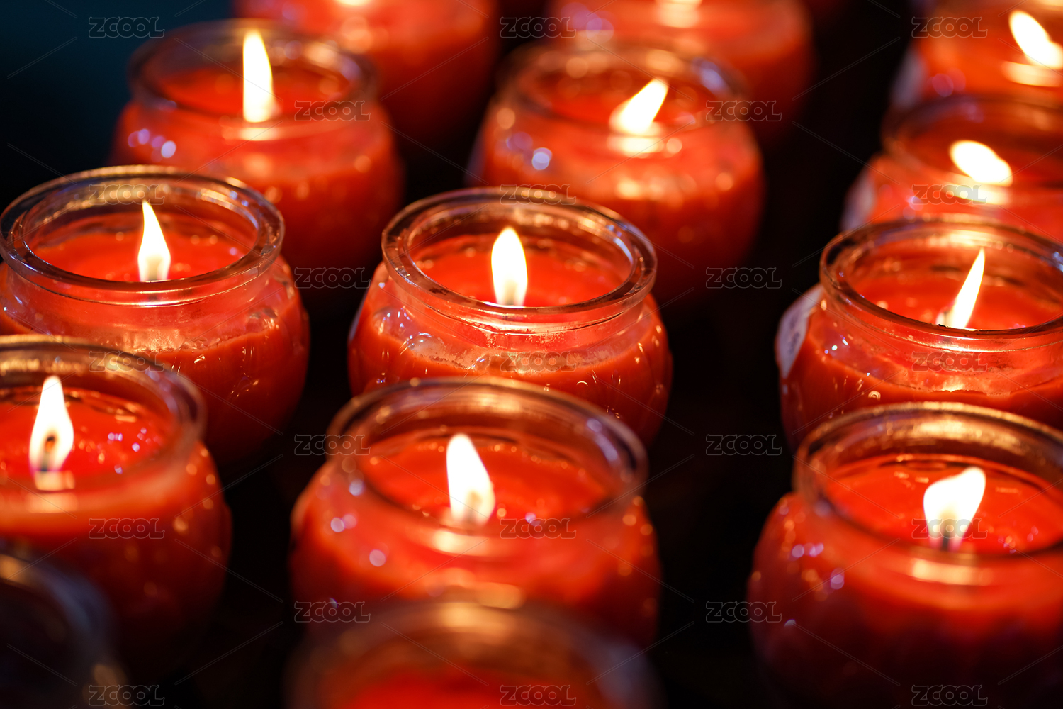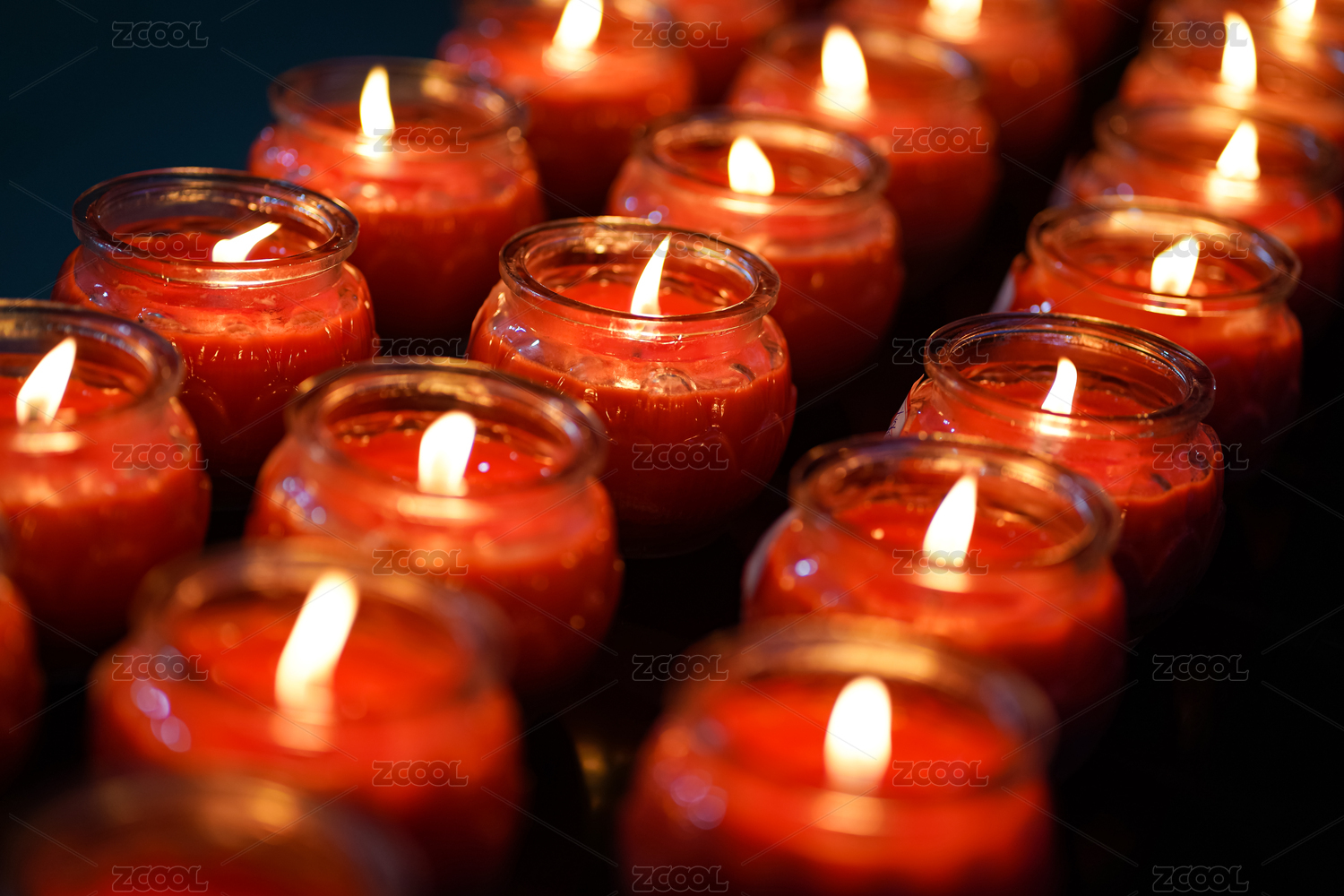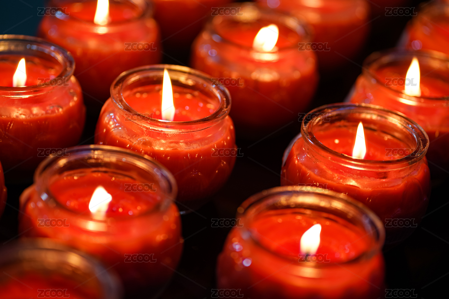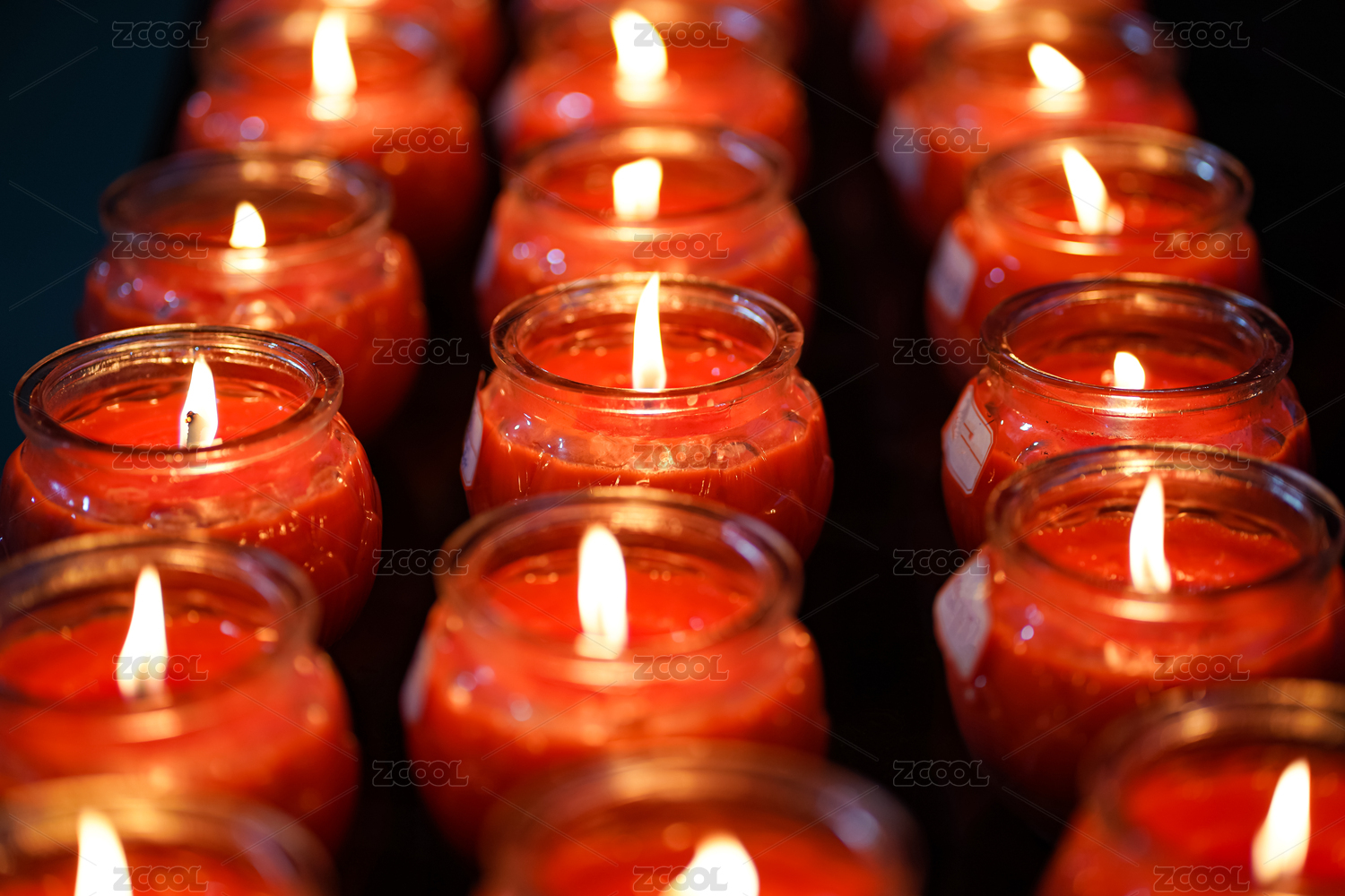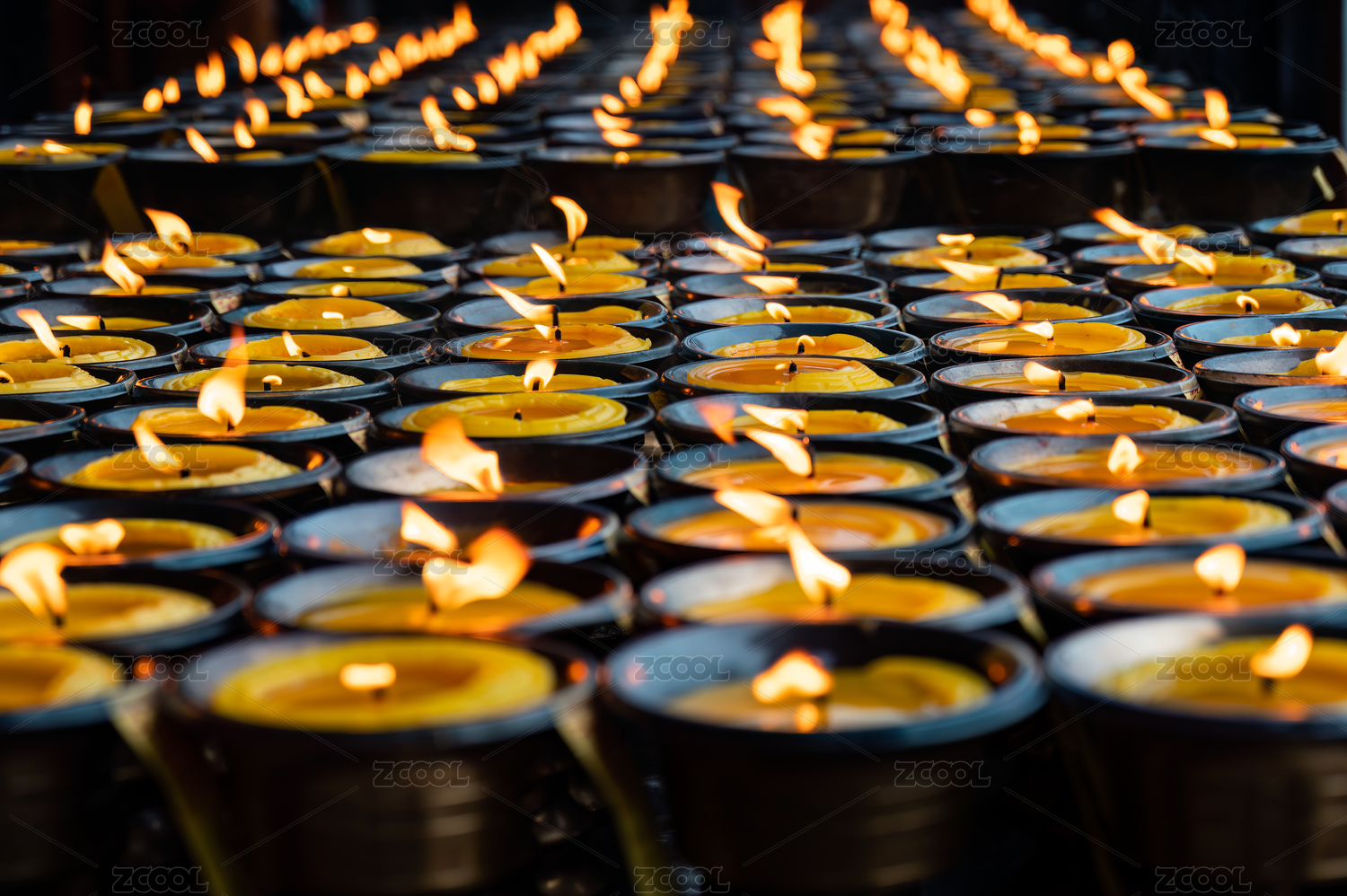 整片排列整齊的點(diǎn)燃的油燈