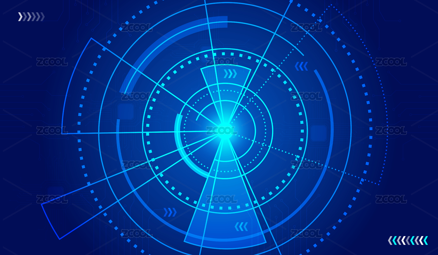 藍(lán)色雷達(dá)掃描矢量圖形抽象科技背景