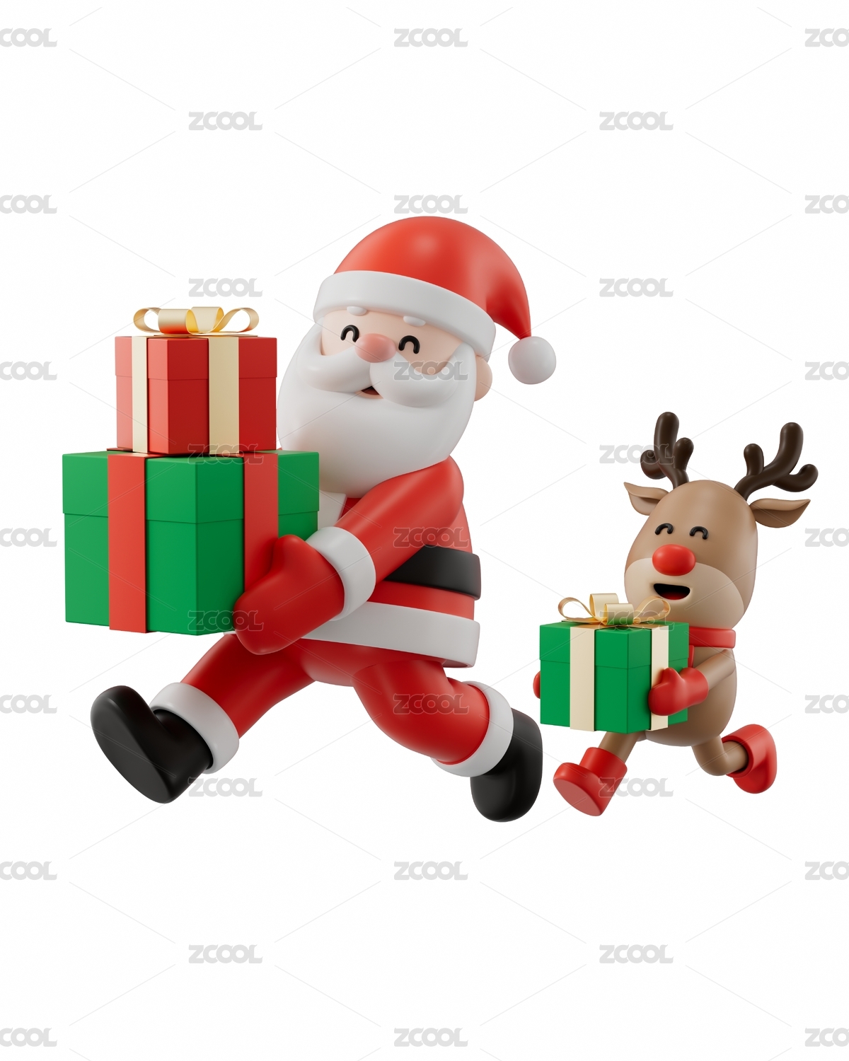 3D渲染圣誕老人和小鹿抱著禮盒慶祝圣誕節(jié)