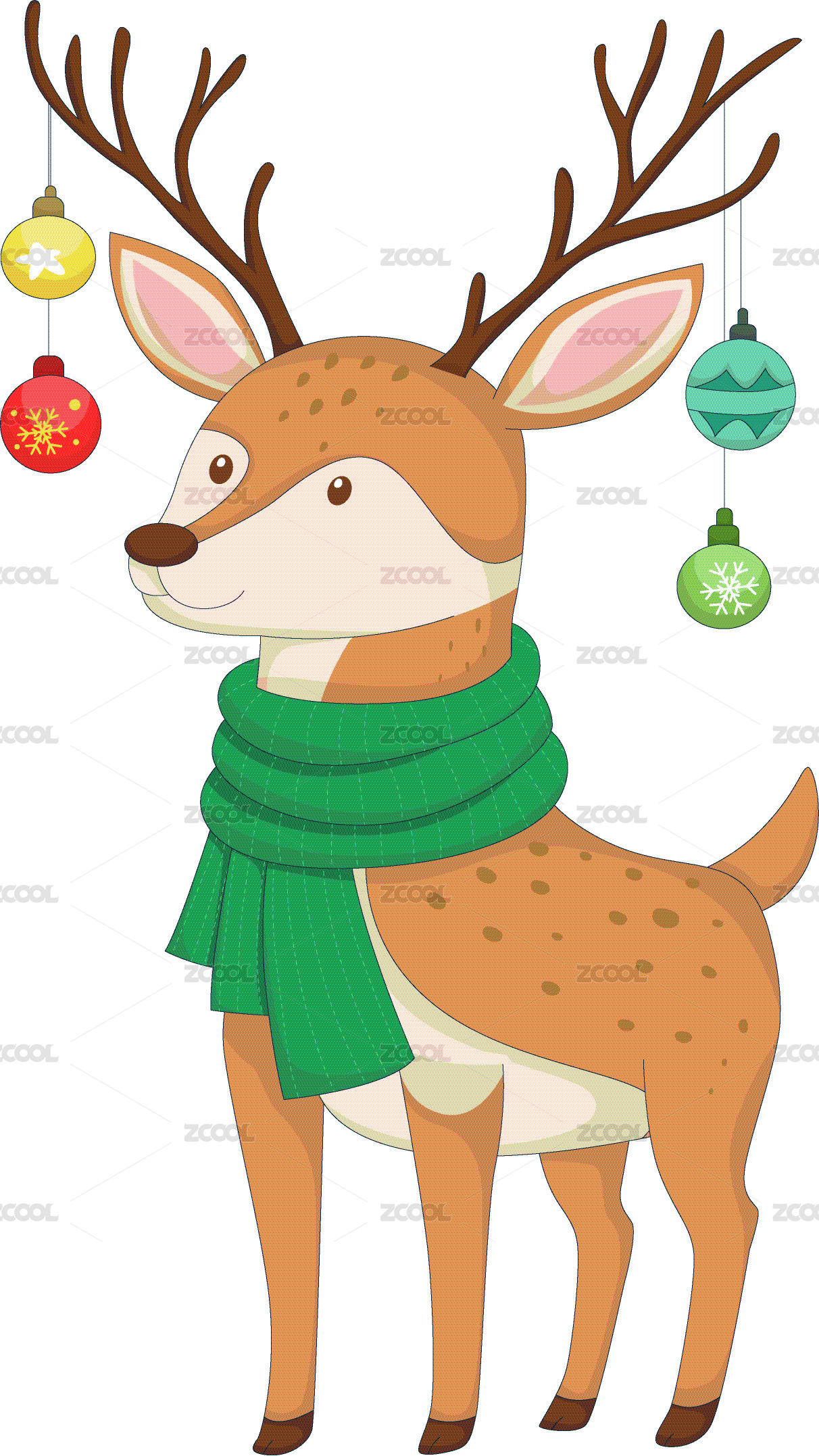 卡通戴圍巾的圣誕小鹿矢量插畫圖案