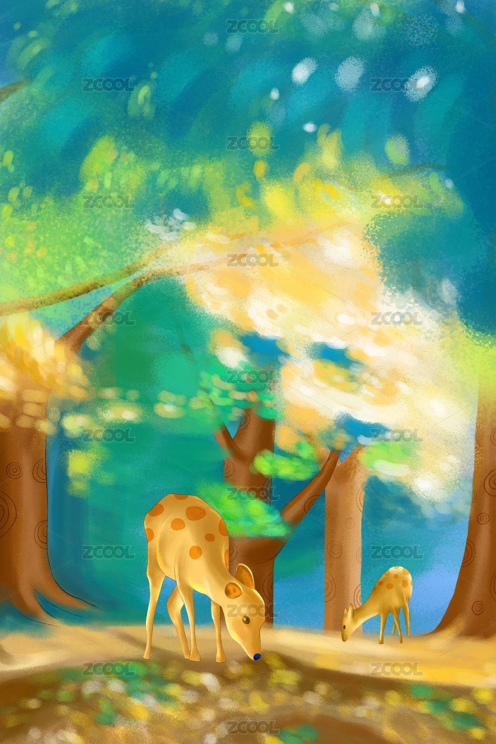 手繪插畫——森林小鹿