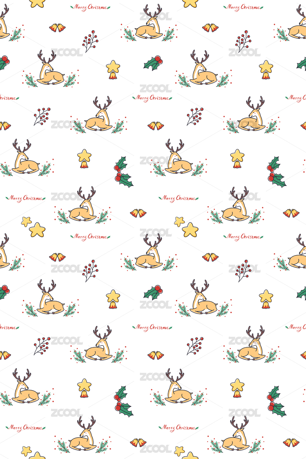圣誕節(jié)小鹿星星可愛循環(huán)圖案豎版