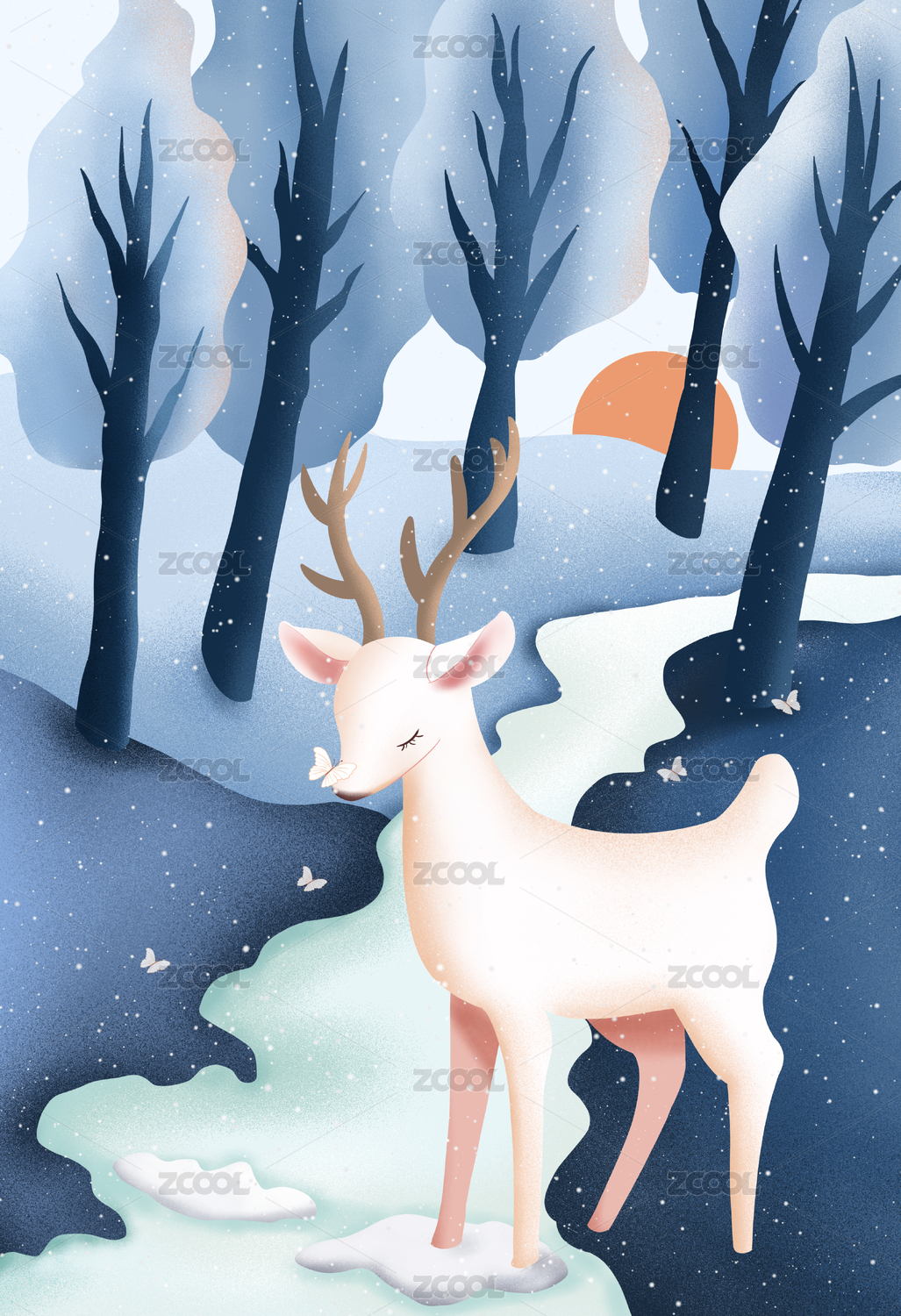 冬天雪林小鹿