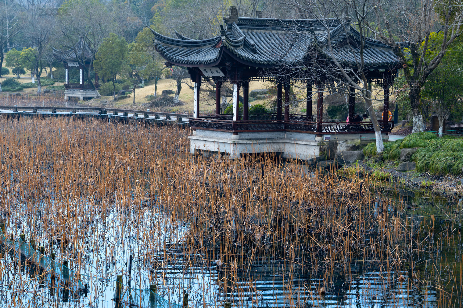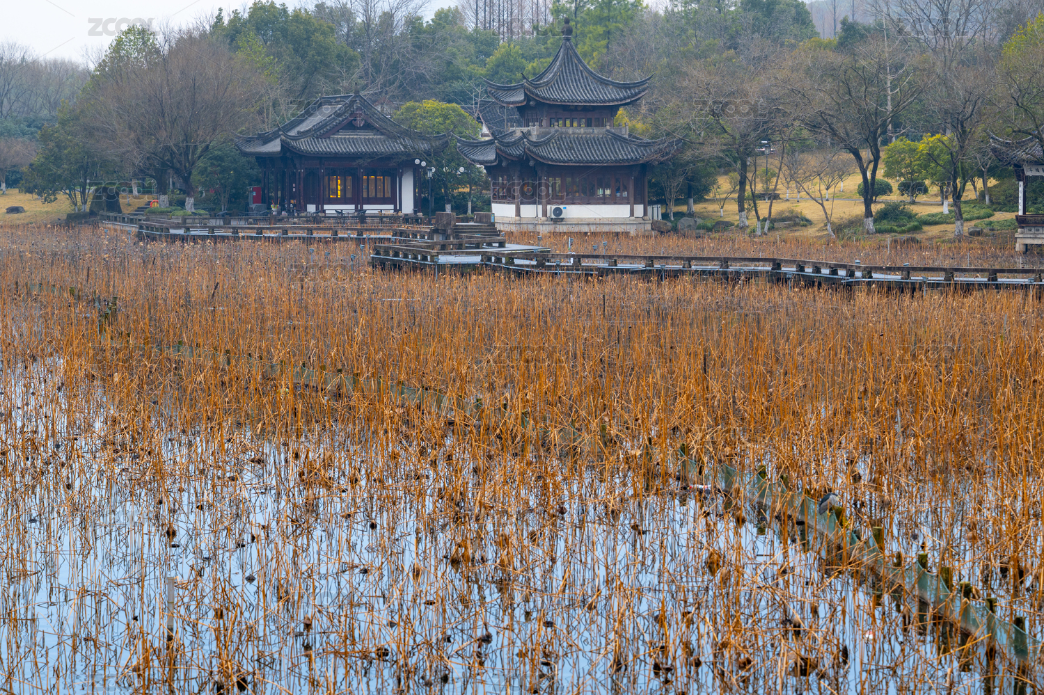 冬雪后的杭州湘湖荷花莊雪景風(fēng)光照