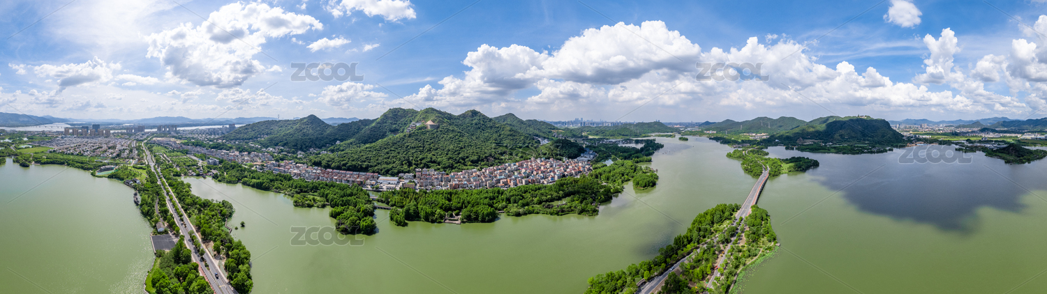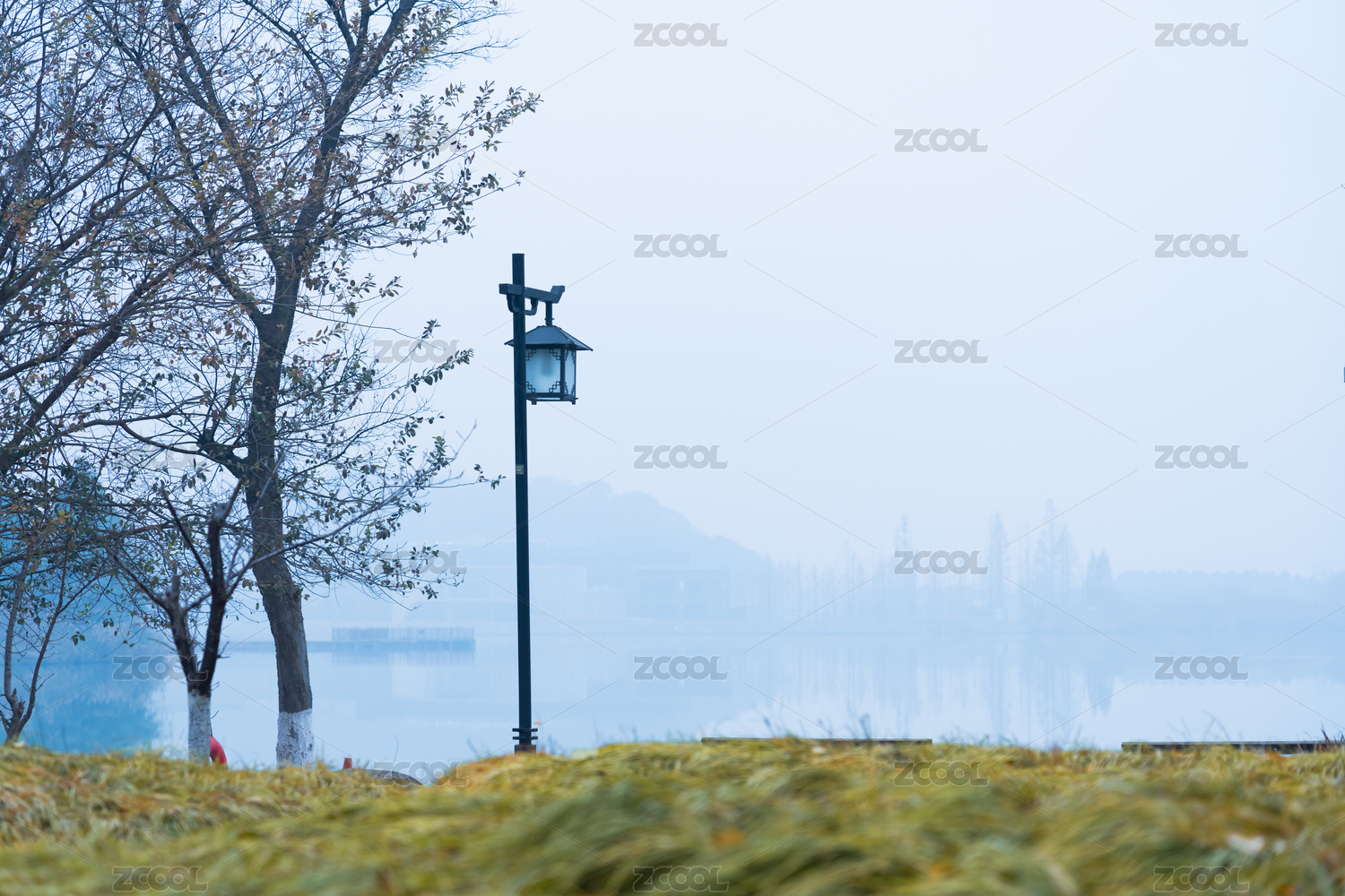 煙雨中的江南杭州湘湖景區(qū)自然風(fēng)景