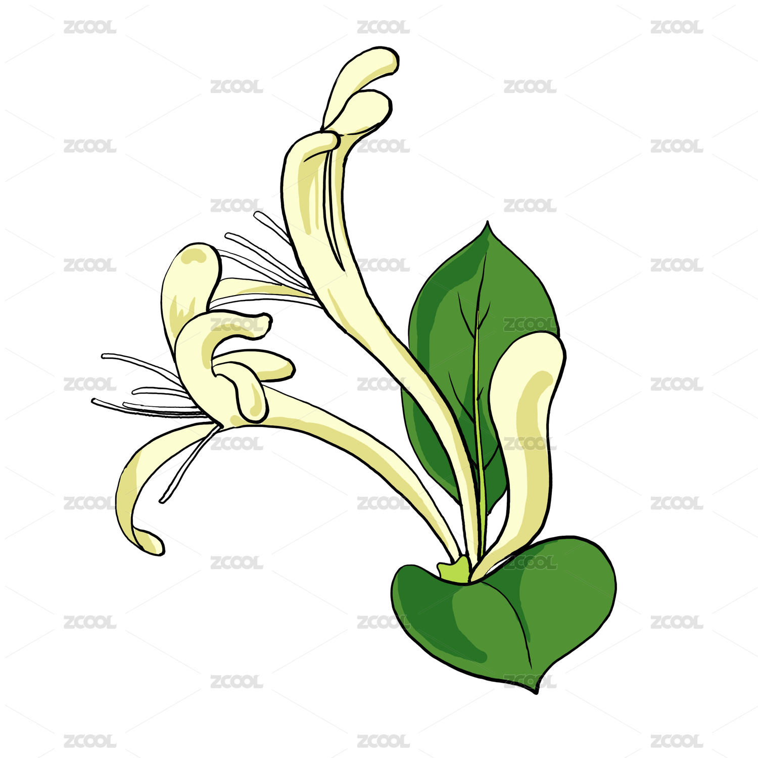 手繪夏季植物花卉輕柔美麗金銀花