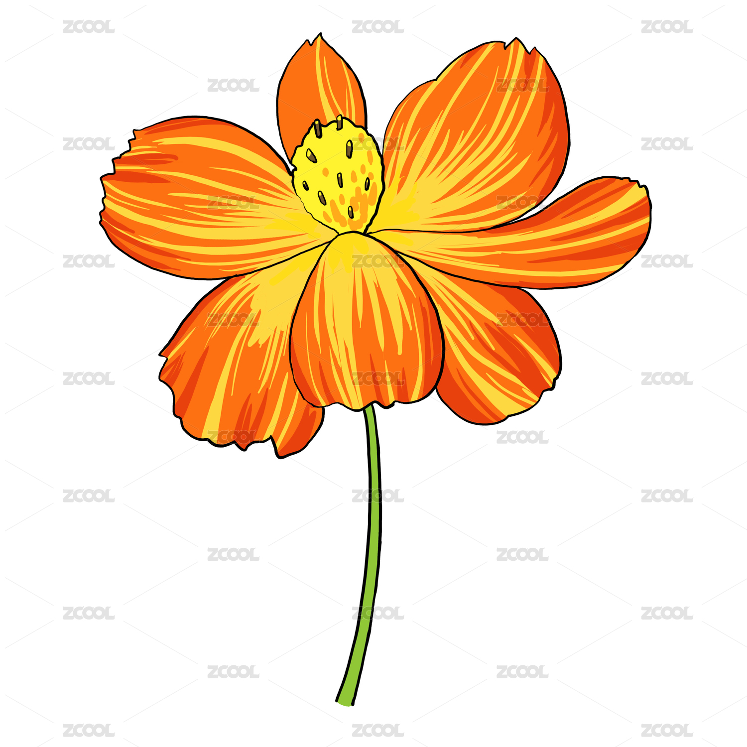 手繪夏季桔紅色花卉輕柔俏麗波斯菊