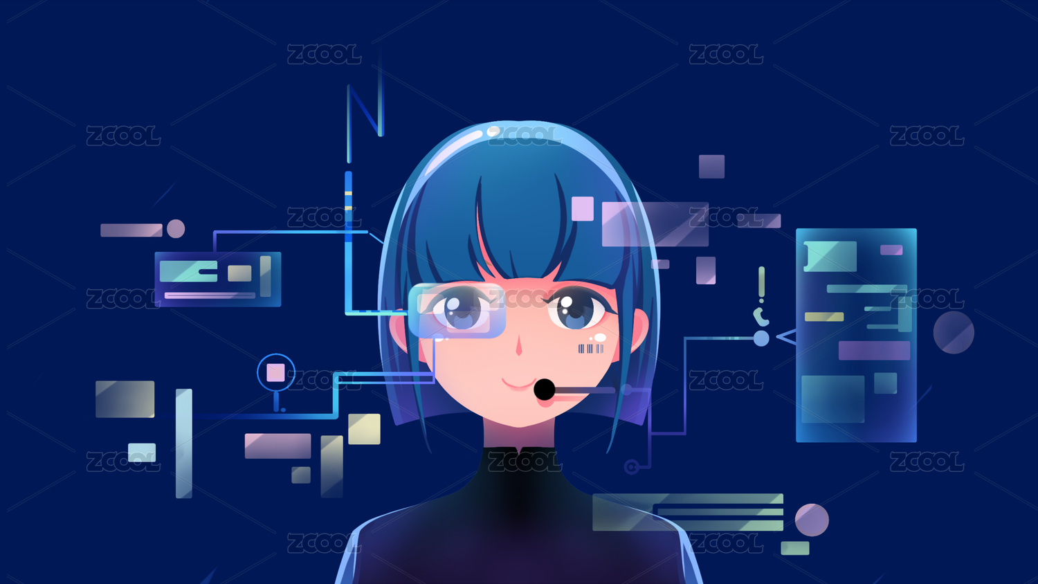 女孩注視著面前眾多數(shù)據(jù)屏 科技智能插畫(huà)