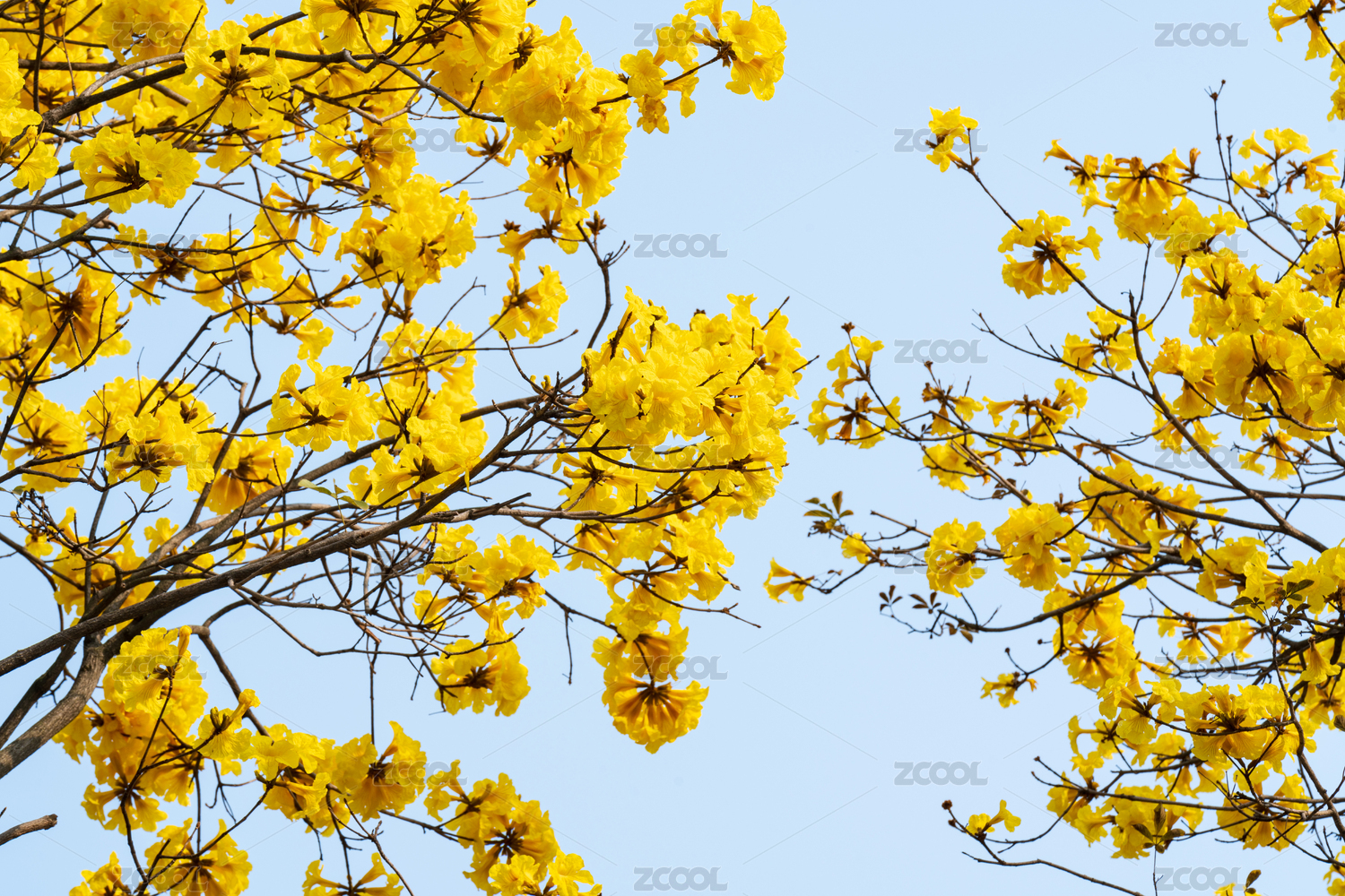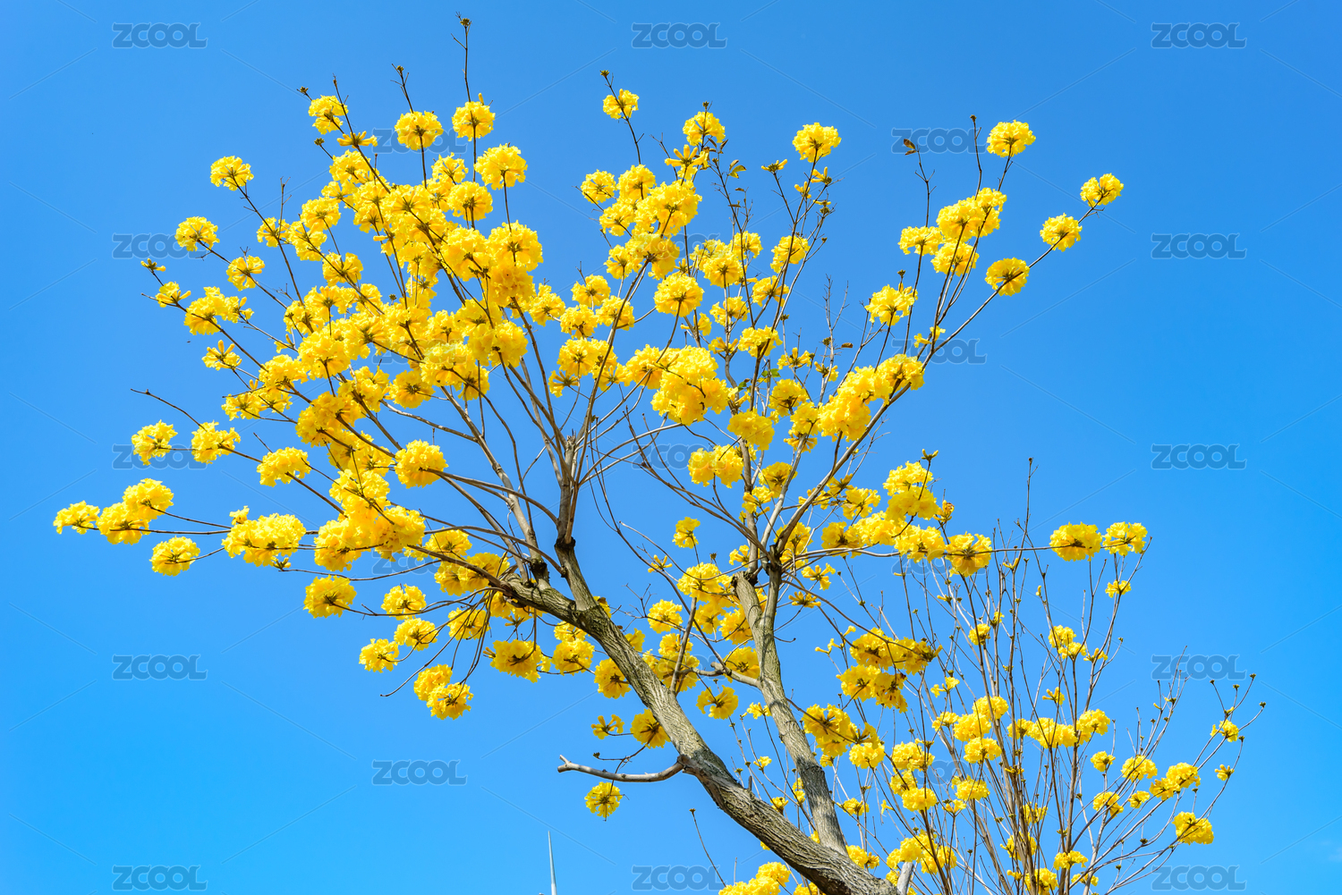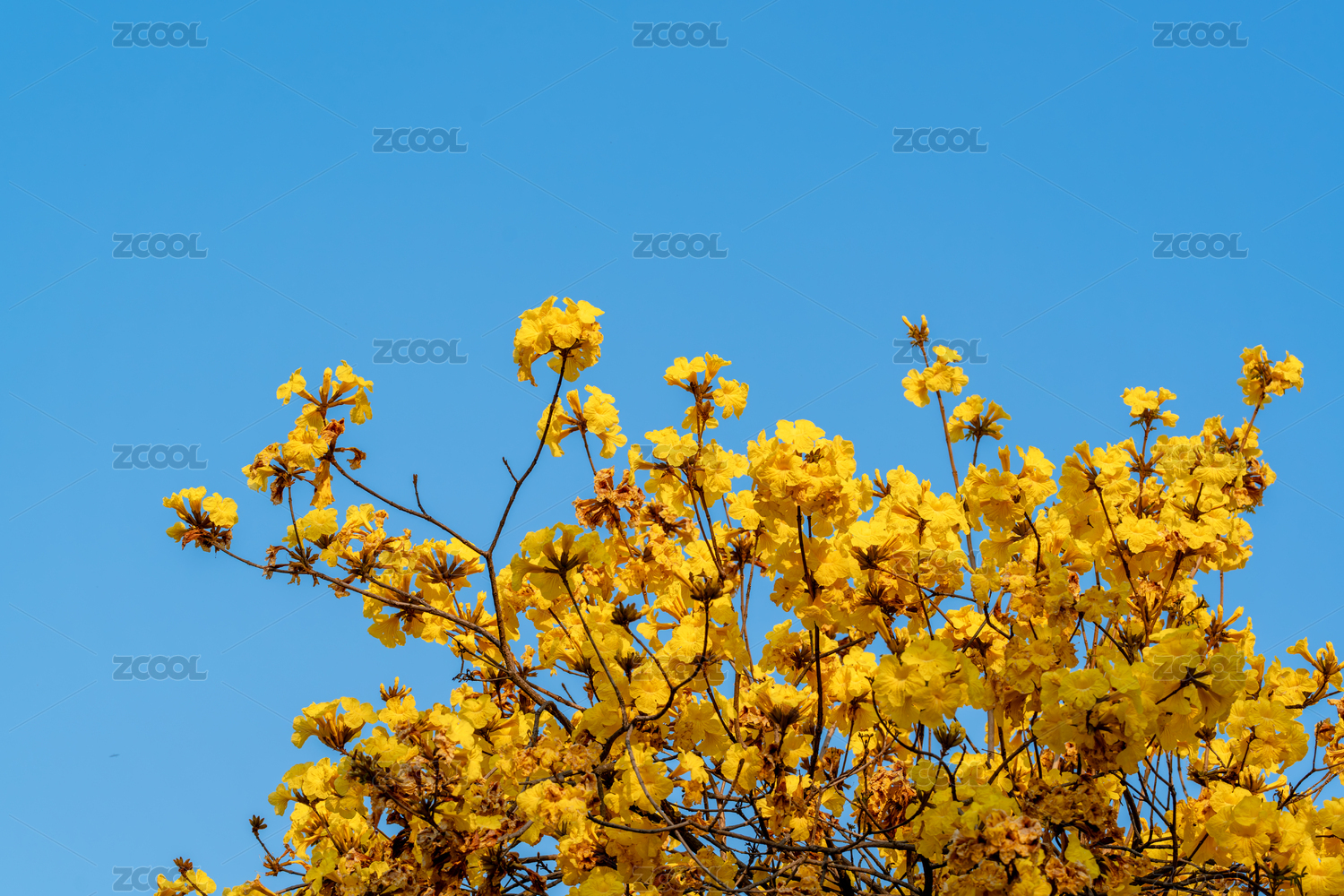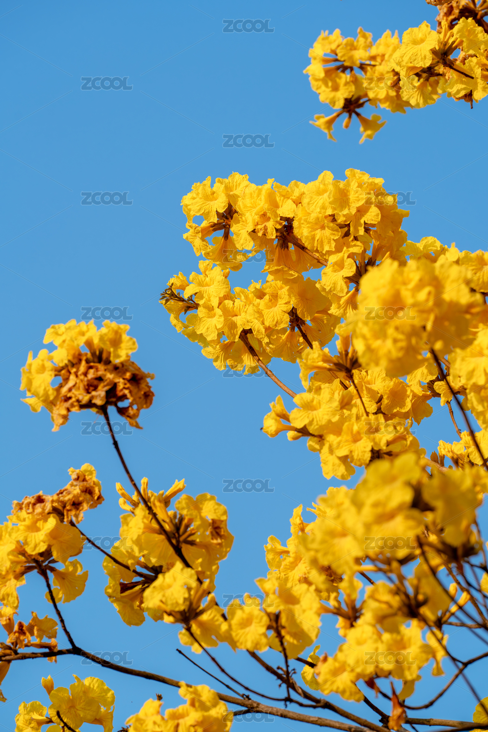 藍(lán)天襯映下的黃花風(fēng)鈴木盛開