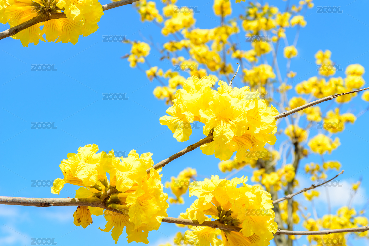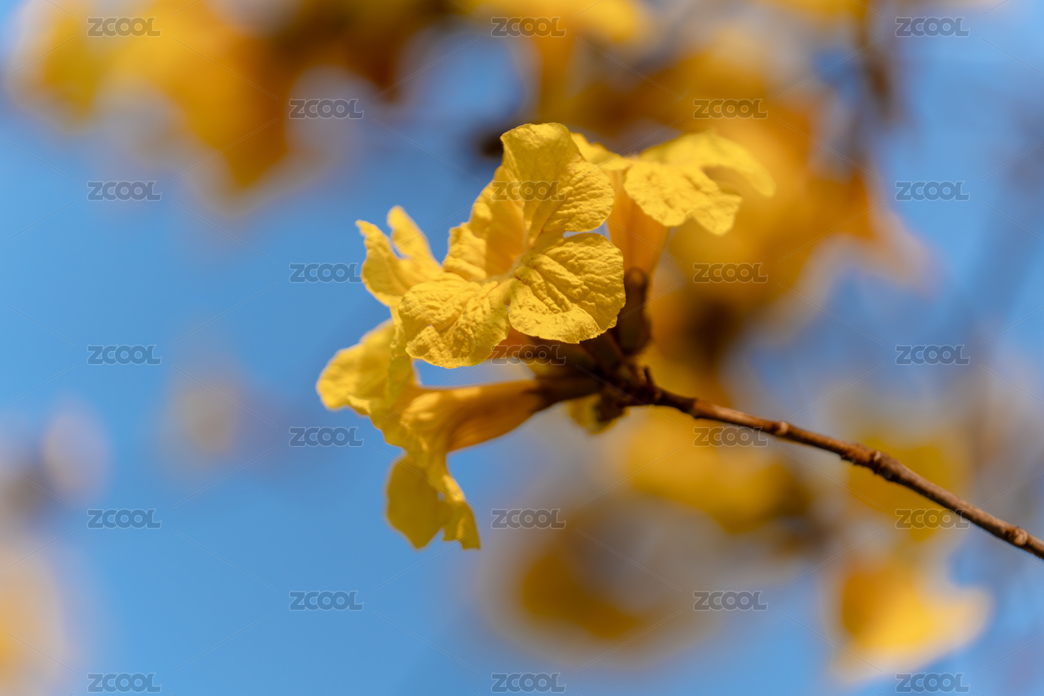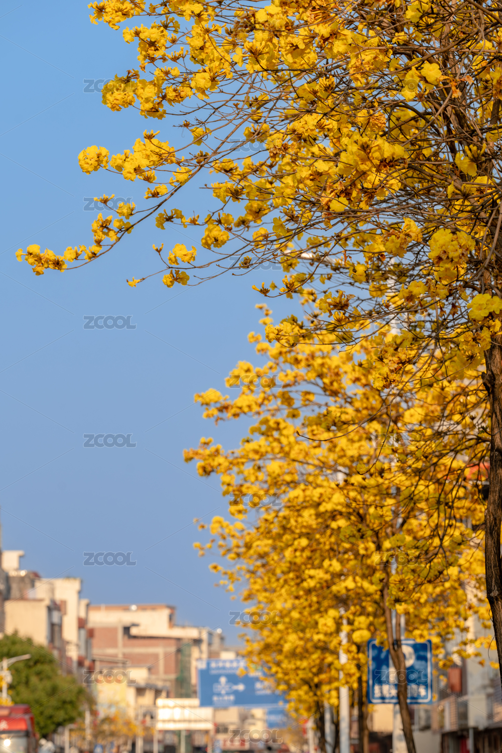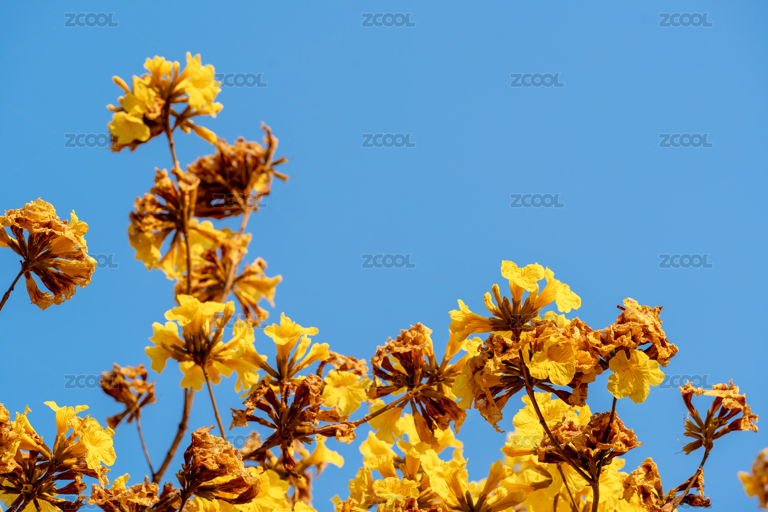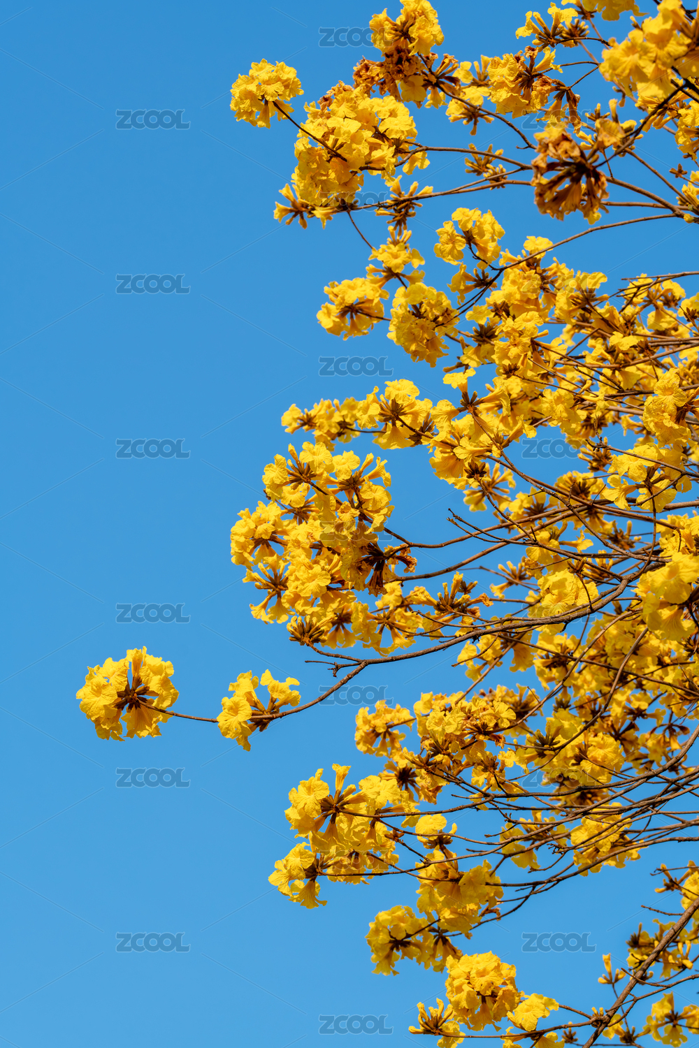 藍(lán)天襯映下的黃花風(fēng)鈴木盛開