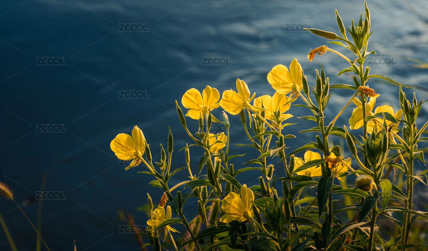 水邊的月見草黃花