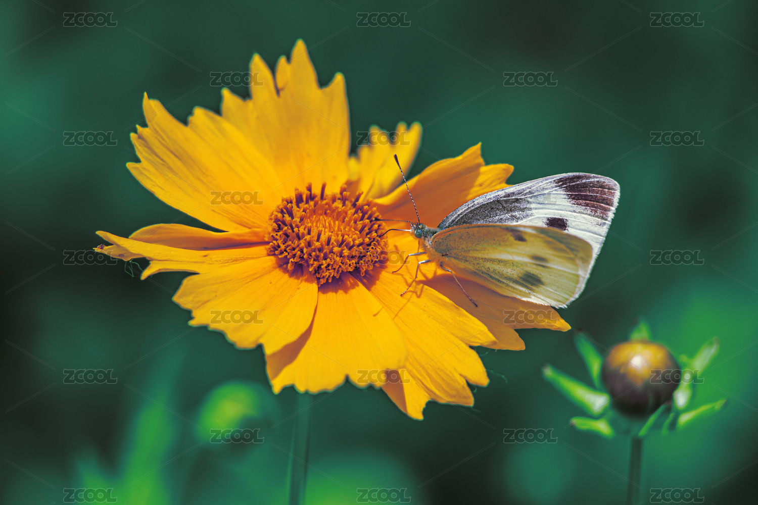 側(cè)面蝴蝶與黃花