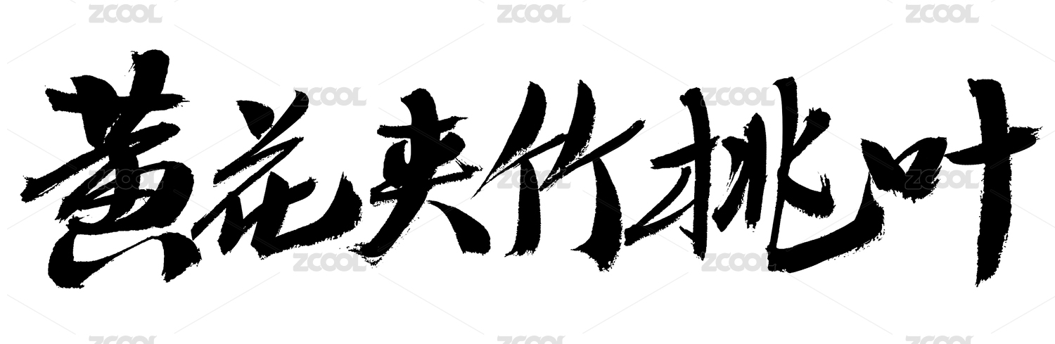 黃花夾竹桃葉中藥名稱手寫書法字體