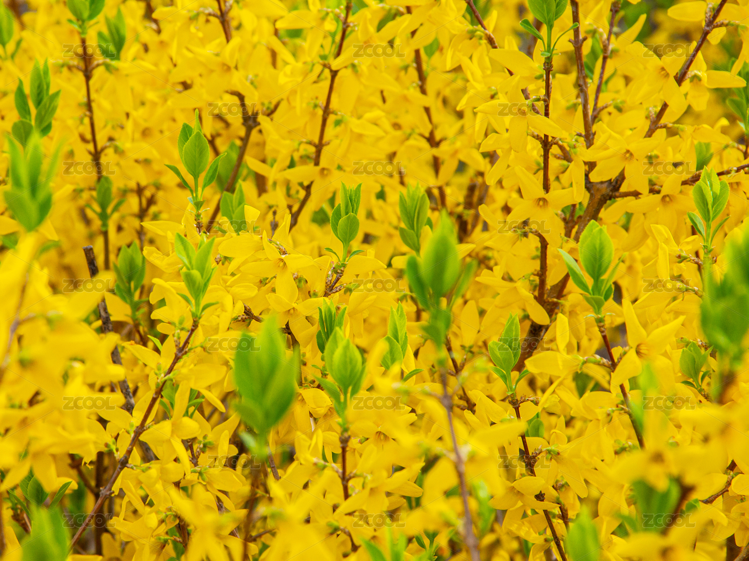 連翹 枝條 黃花和綠葉